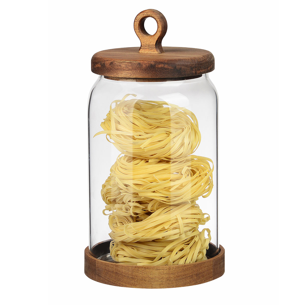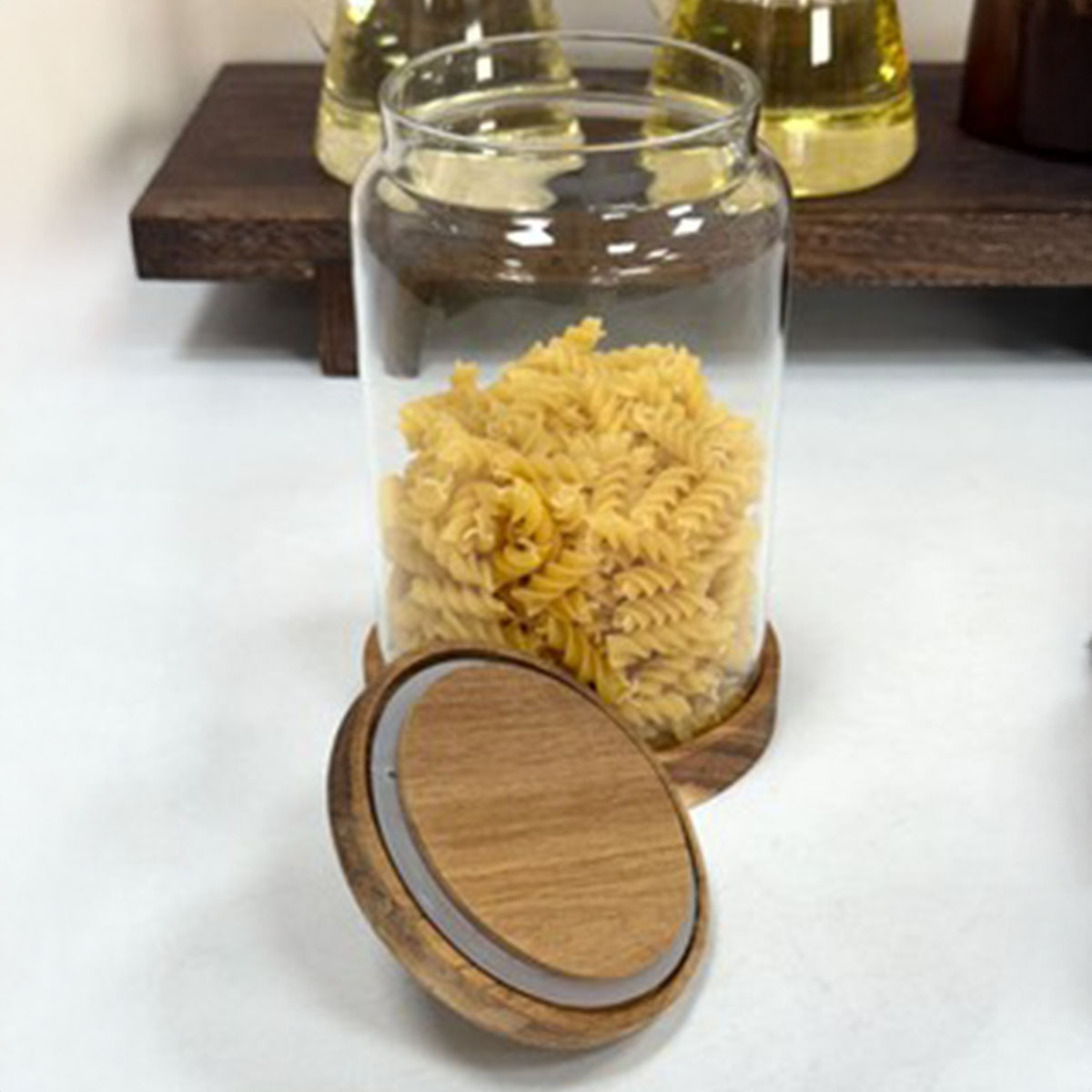 1850 ml hacmiyle daha fazla gıda ve malzemelerin saklanması için ideal olan bu kavanoz, akasya kapak tasarımı sayesinde doğal ve estetik bir görünüm sunar.