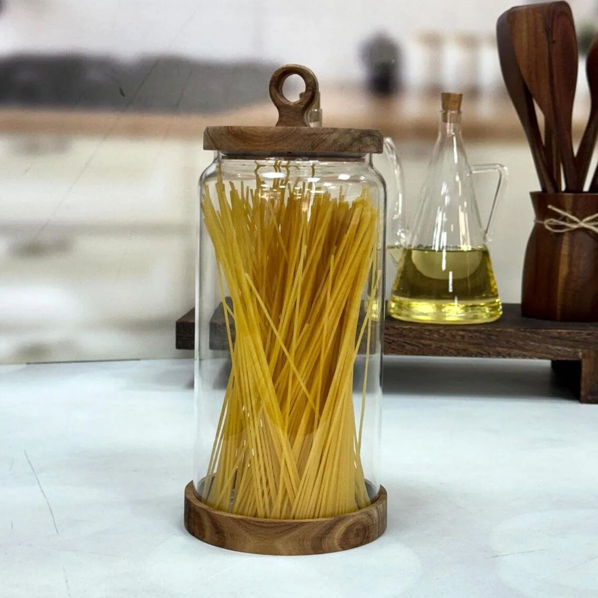 Arow Nora Akasya Kapaklı Cam Kavanoz, mutfağınızda hem şıklığı hem de pratikliği bir araya getirir.