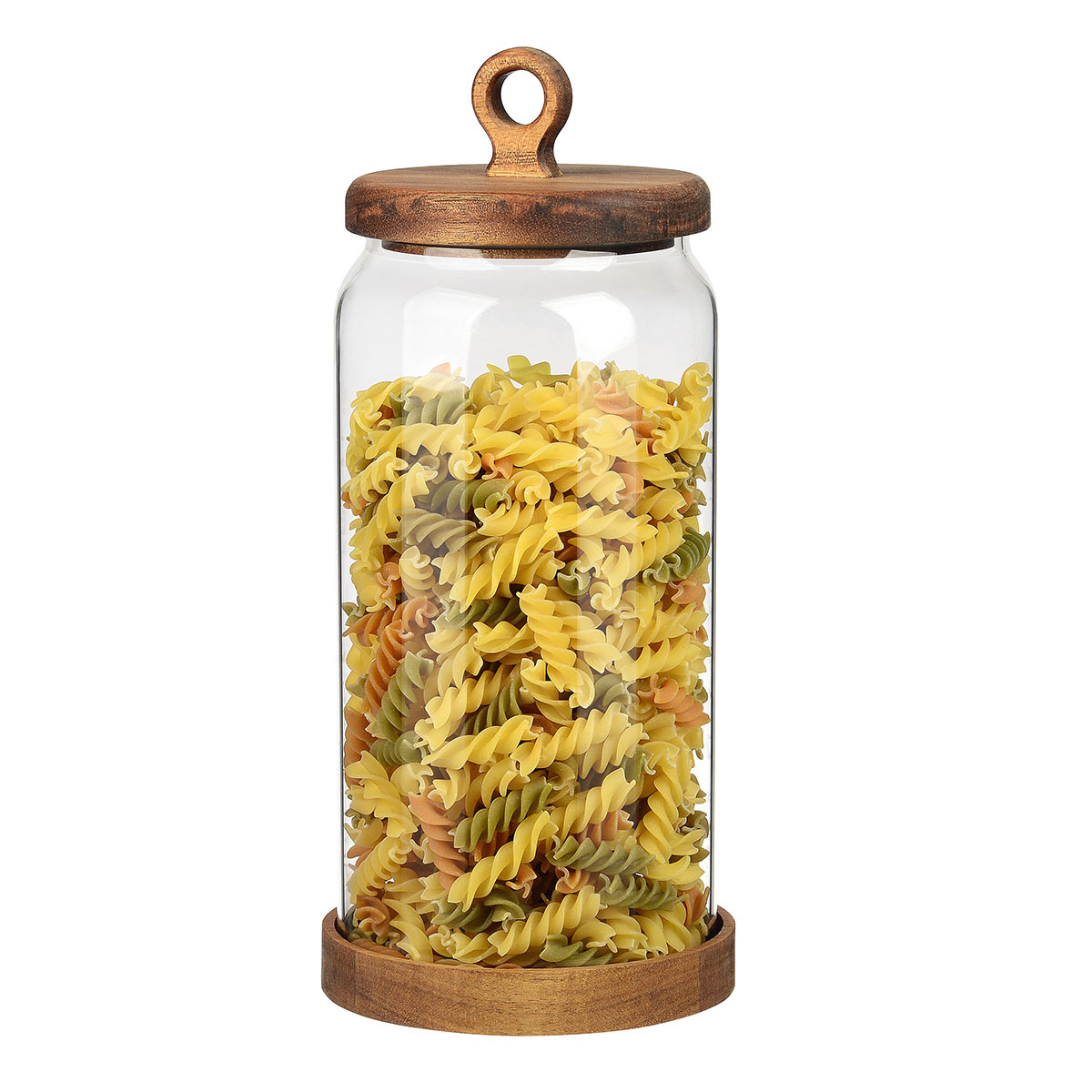 2350 ml hacmiyle daha fazla gıda ve malzemelerin saklanması için ideal olan bu kavanoz, akasya kapak tasarımı sayesinde doğal ve estetik bir görünüm sunar.