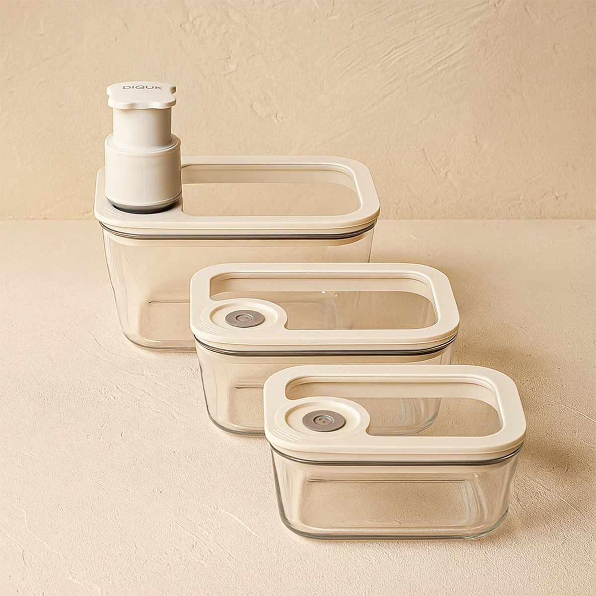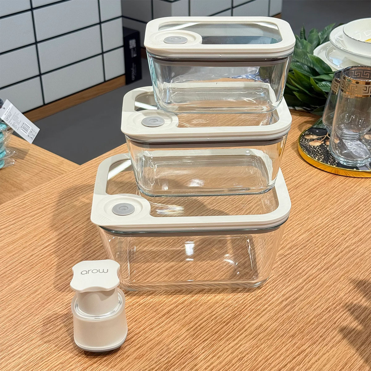 Arow Novelty Manuel Cam Vakumlu Saklama Kabı Seti, modern ve sade tasarımıyla mutfağınıza estetik bir görünüm kazandırırken, fonksiyonel yapısıyla günlük ihtiyaçlarınıza pratik çözümler sunar. Düzenli, sağlıklı ve uzun süre taze kalan gıdalar için ideal bir saklama alternatifidir.
