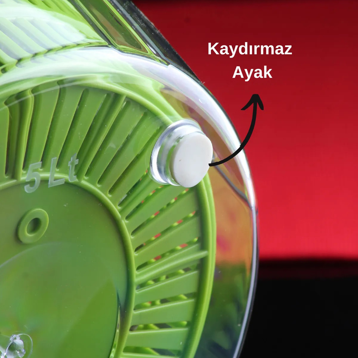 Büyük Kapasite: 5 litrelik büyük kapasitesi ile daha fazla sebze veya salata kurutabilirsiniz.