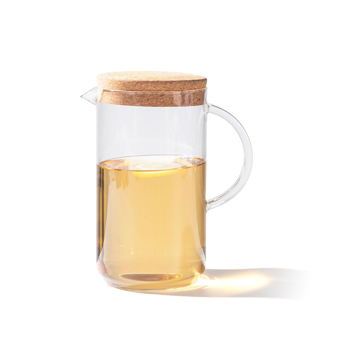 Mantar kapak tasarımı, sürahiyi güvenli bir şekilde kapatarak içeceklerin tazeliğini ve aromasını korur. Doğal ve estetik görünümü ile mutfak dekorunuza zarif bir dokunuş ekler.