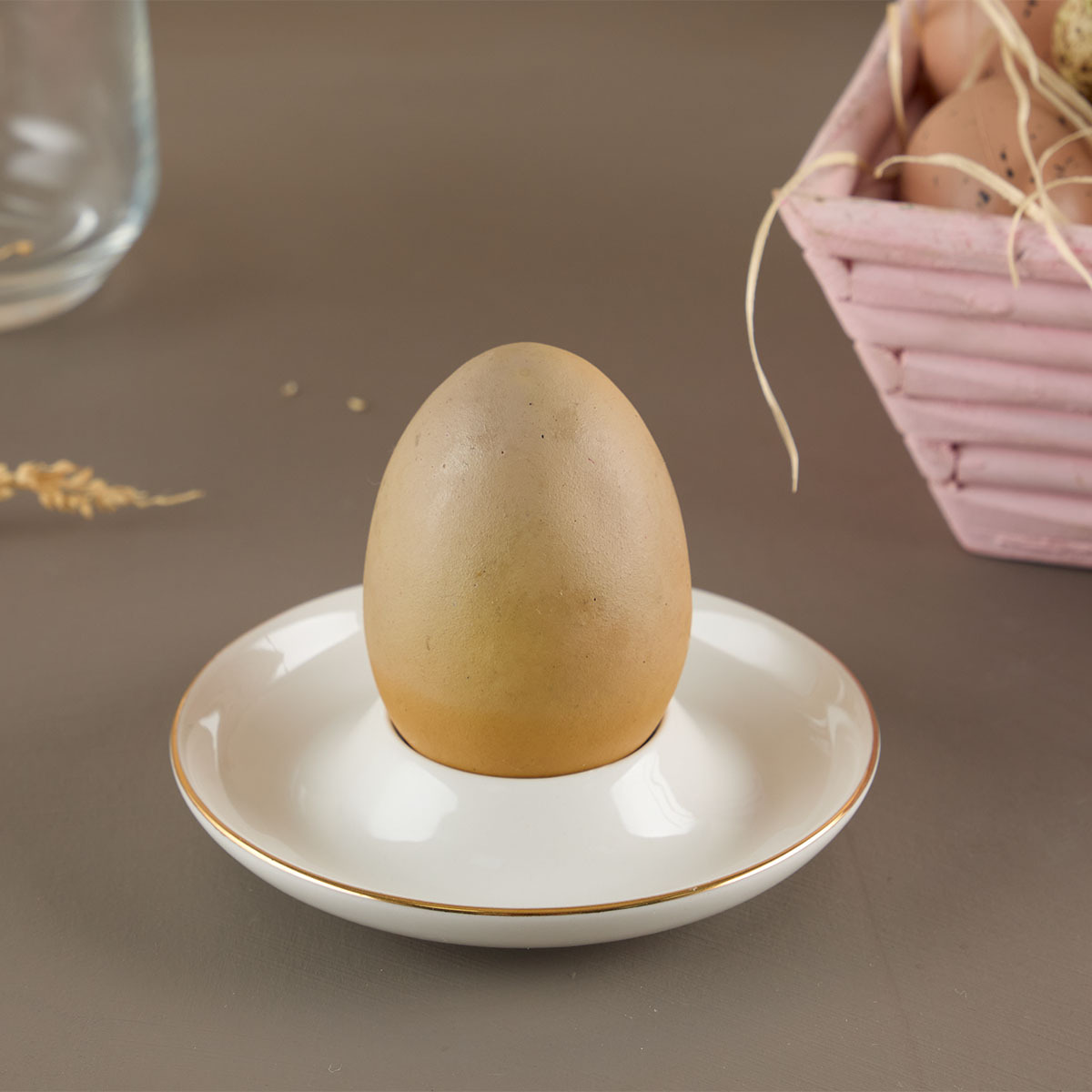Haşlanmış yumurtaların dengeli ve düzenli bir şekilde sunulmasını sağlayan özel formu, hem günlük kahvaltılarda hem de misafirli sofralarda pratik kullanım sunar. Gold detayları sayesinde sofrada dikkat çeken bir aksesuar olurken, minimal yapısı ile diğer servis ürünleriyle uyum içinde kullanılır.