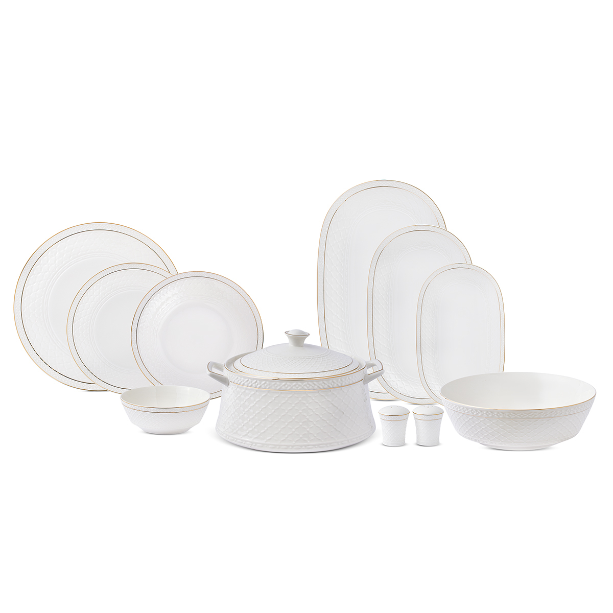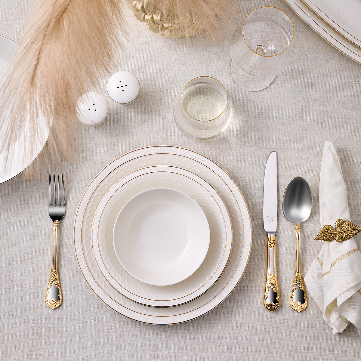 İnce gold yaldız detayları ve sade tasarımıyla dikkat çeken bu özel takım, sofralarınıza asalet ve denge kazandırır.
