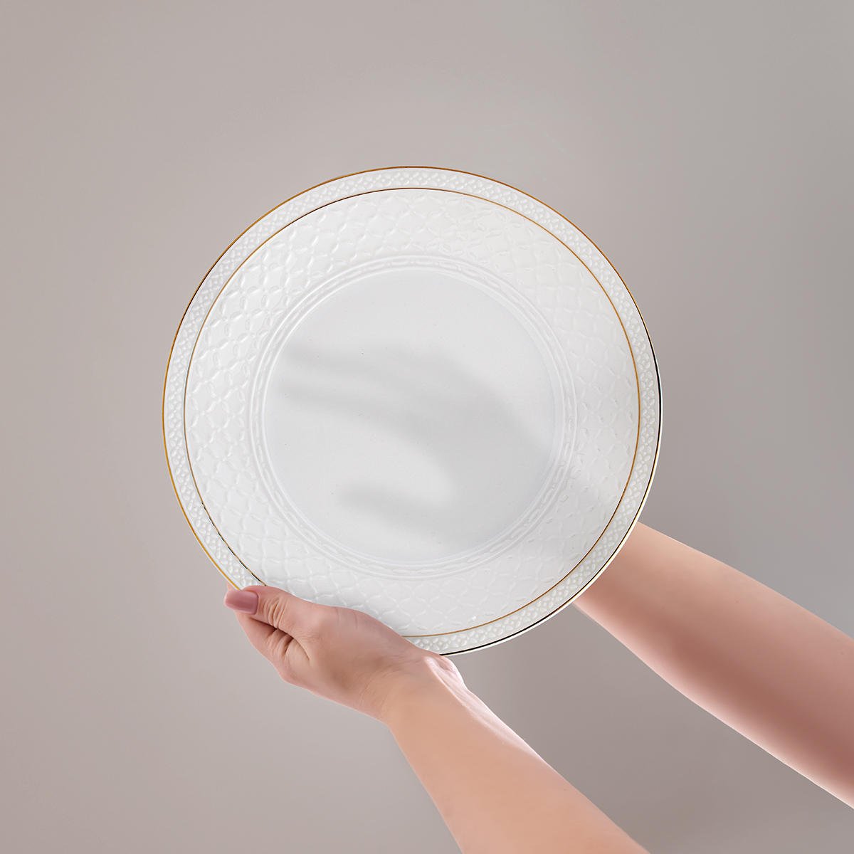 Minimalist gold dokunuşlar, tabaklara sofistike bir görünüm kazandırırken; sağlam ve dayanıklı yapısıyla uzun ömürlü kullanım sağlar.
