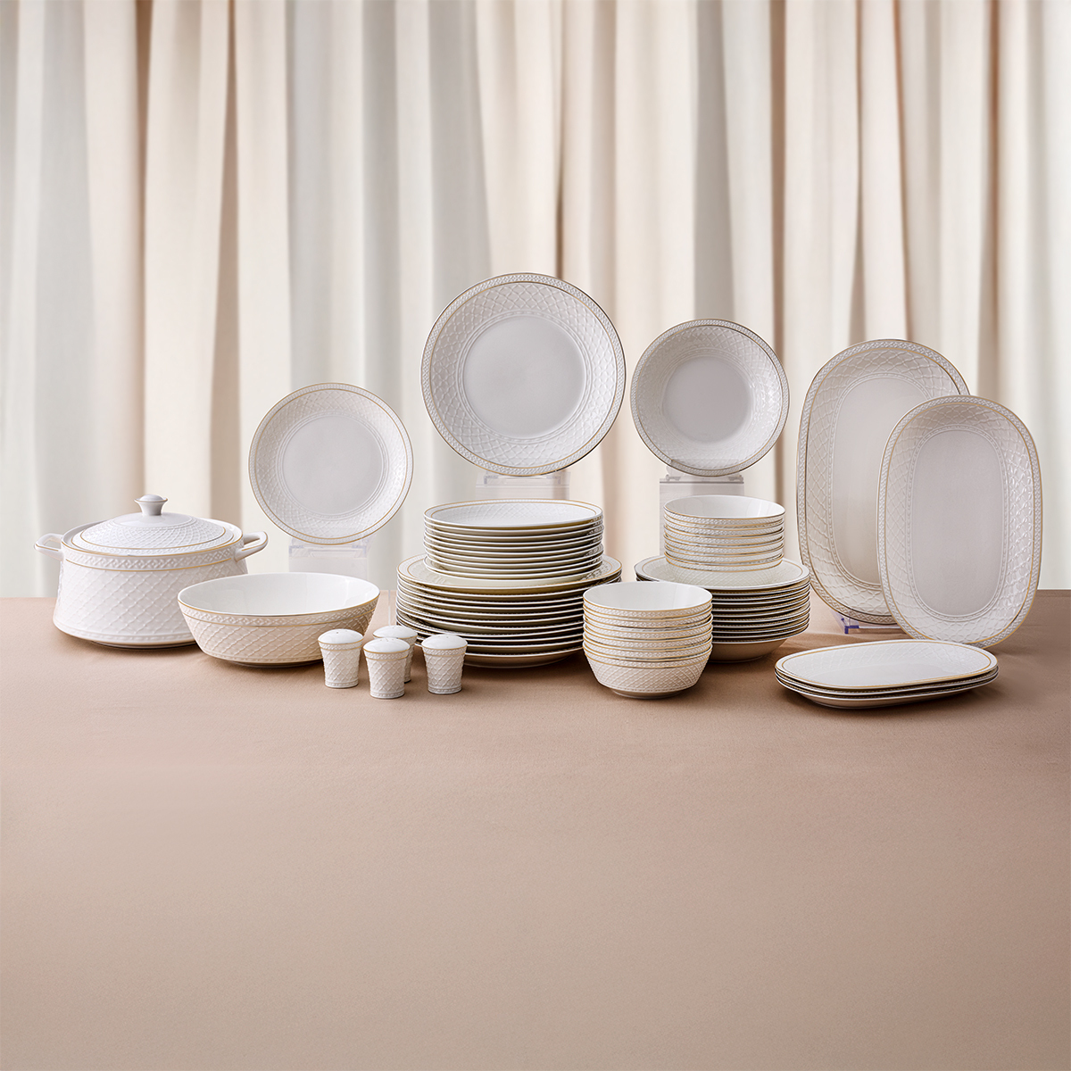Yüksek kaliteli porselen malzemeden üretilen parçalar, hem günlük kullanıma hem de özel davetlere uygun bir şıklık sunar.