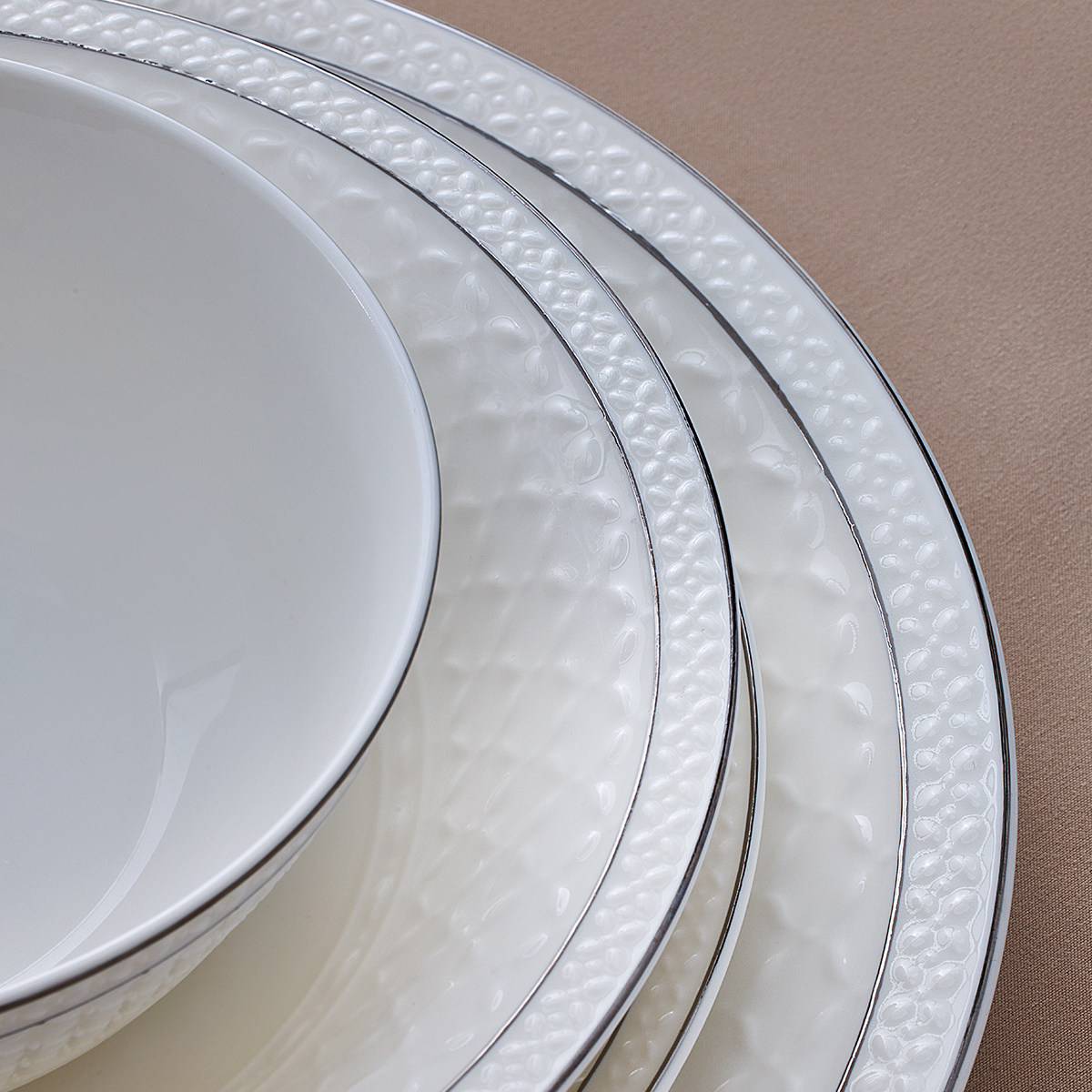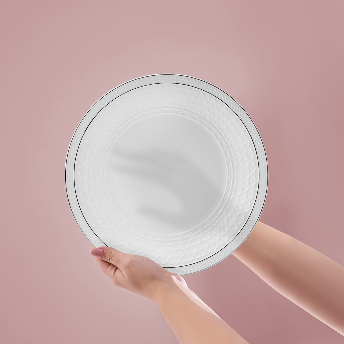 Minimalist Platin dokunuşlar, tabaklara sofistike bir görünüm kazandırırken; sağlam ve dayanıklı yapısıyla uzun ömürlü kullanım sağlar.