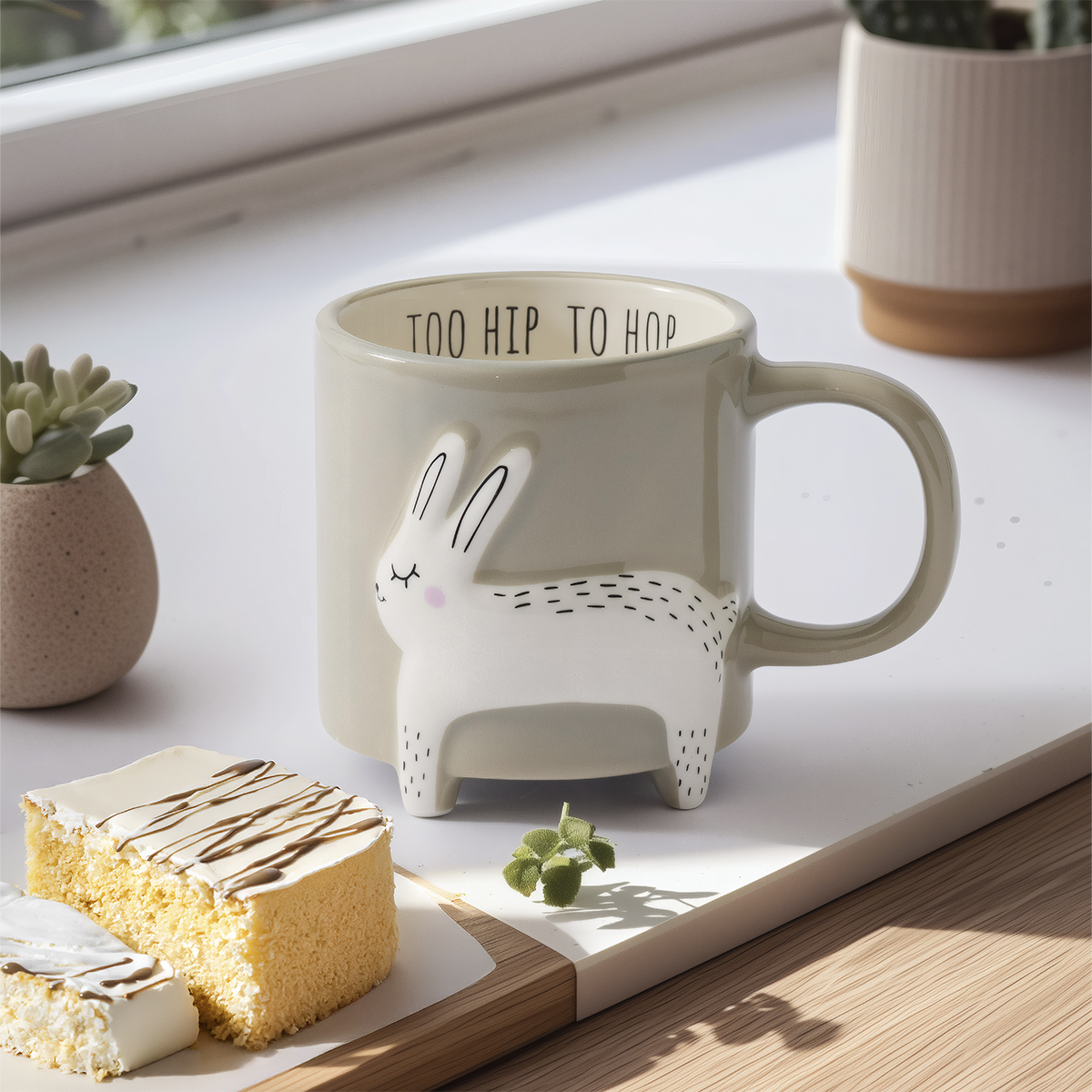 Tavşan figürünün zarif işçiliği, ürünü sadece bir kupa olmaktan çıkarıp dekoratif bir objeye dönüştürüyor.