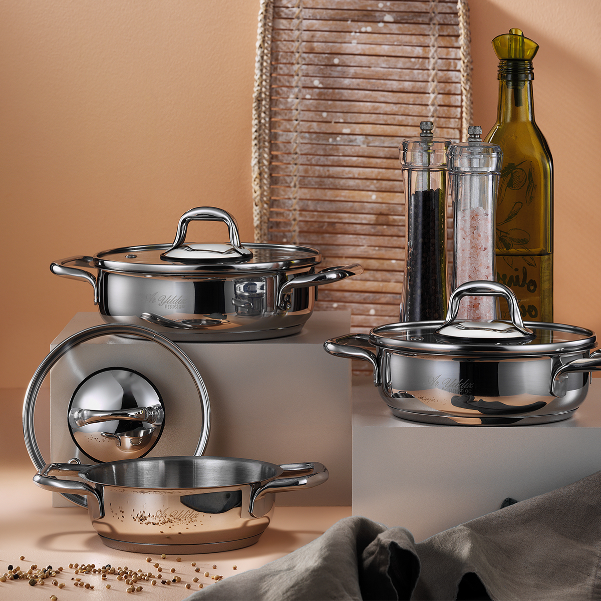 Gelince Haber VerAryıldız Aria Sahan Seti yüksek kalite paslanmaz çelik gövdesi ve kapsül tabanı ile ısıyı tüm yüzeylere eşit bir şekilde yayarak yemeklerinizin proteinlerini kaybetmeden pişmelerini sağlamaktadır.