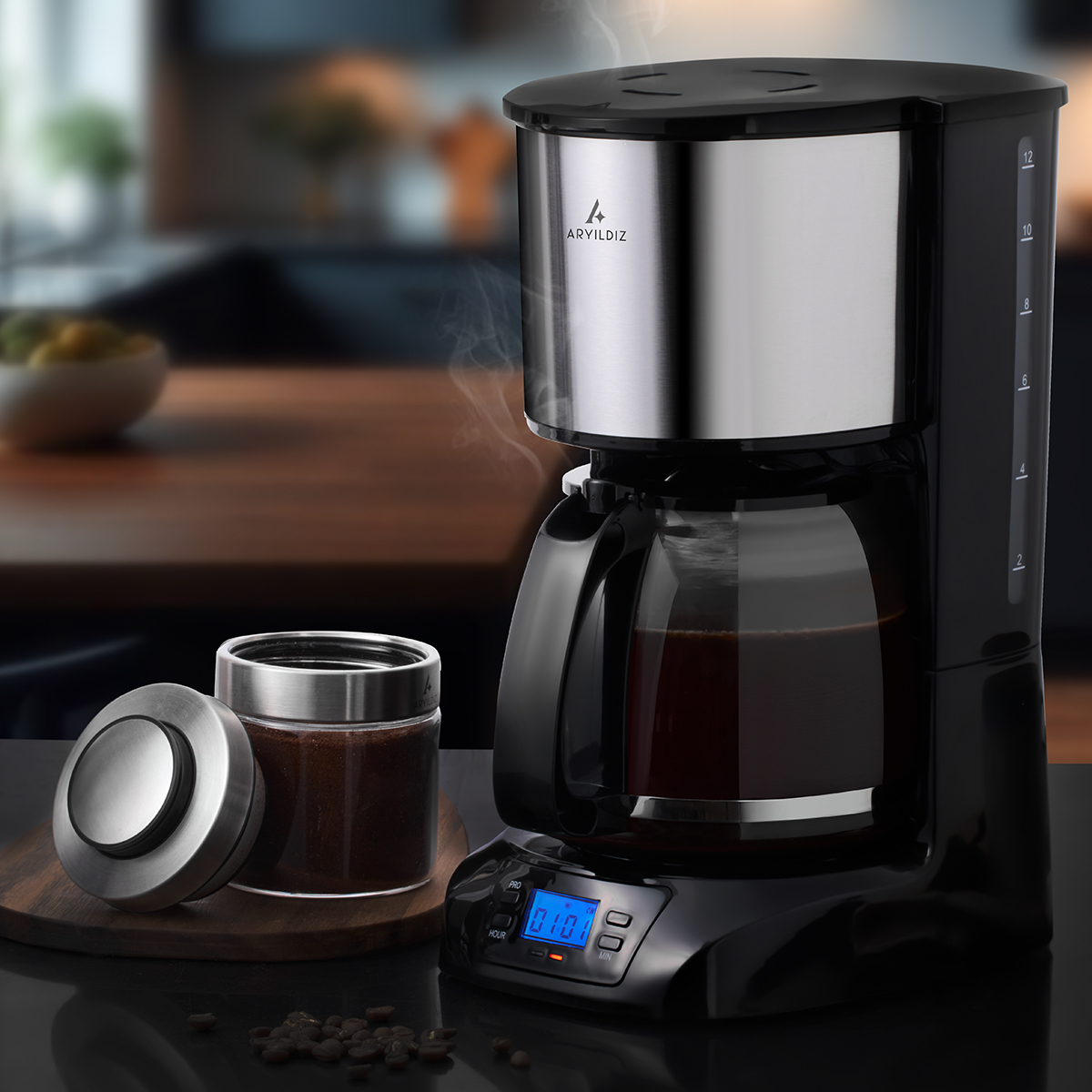Bu model, 1,5 litrelik kapasitesiyle 10-12 fincan kahve demleyebilir.