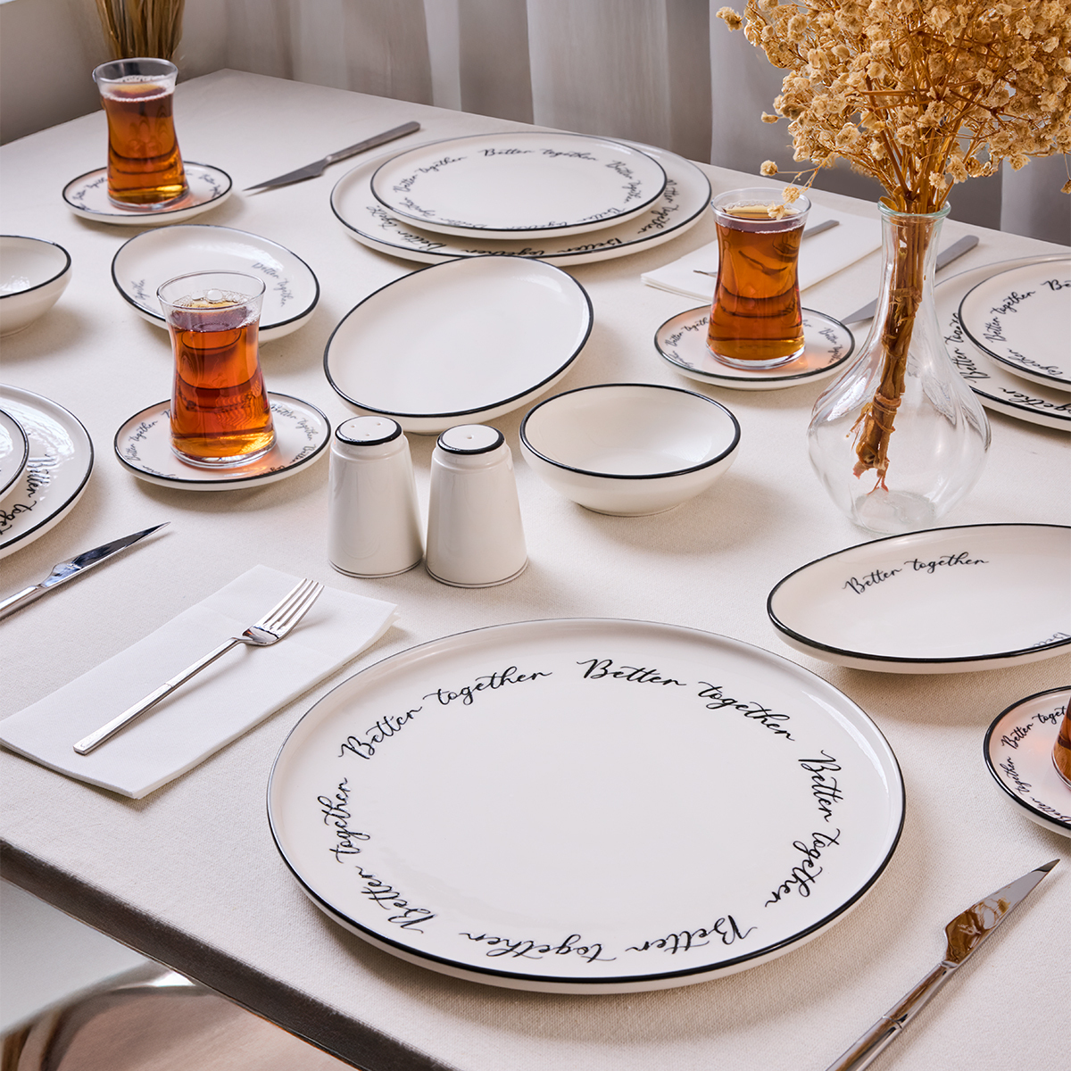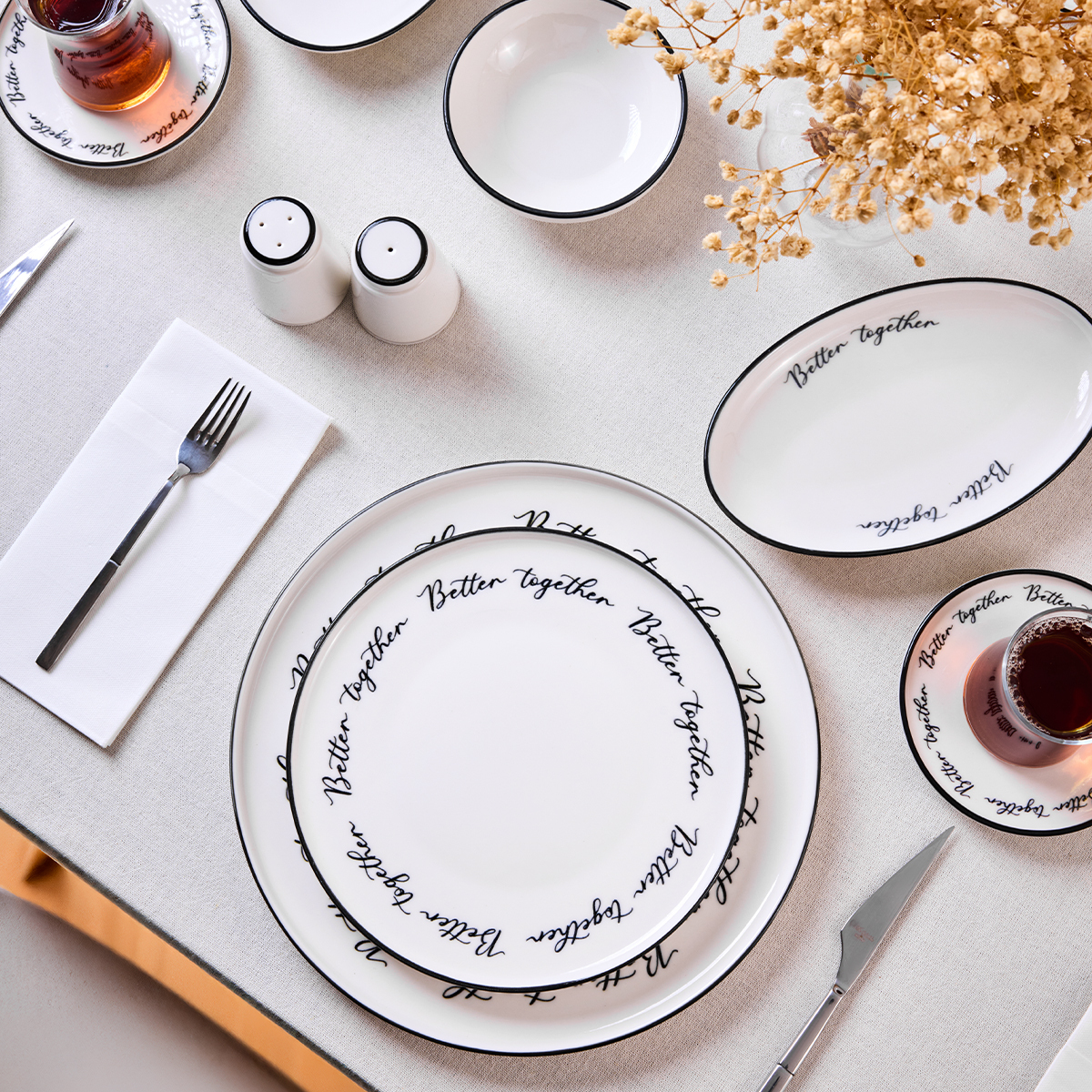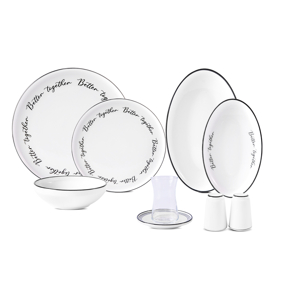 Yüksek kaliteli porselenden üretilen takım, sade ve modern çizgileriyle her mutfağa uyum sağlar. Pastel tonları ve “Better Together” temalı zarif detaylar, sofralara sıcaklık ve samimiyet katar. Estetik görünümüyle kahvaltı sofralarınıza zarif bir atmosfer kazandırır.