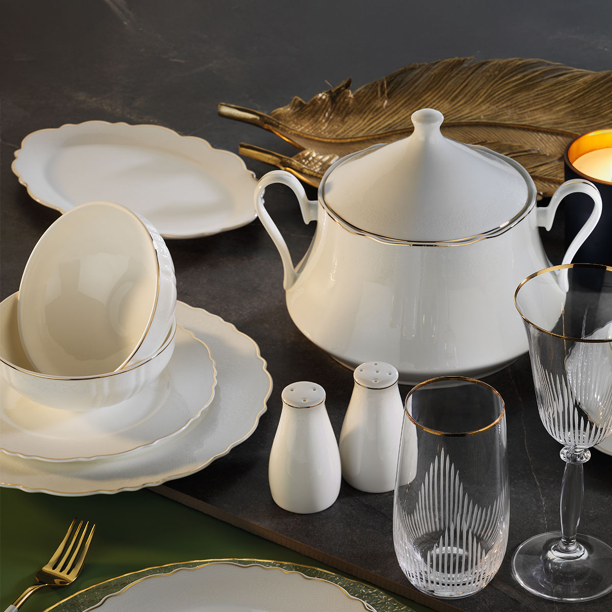 Aryıldız Bone Wave 60 Parça 12 Kişilik Yemek Takımı