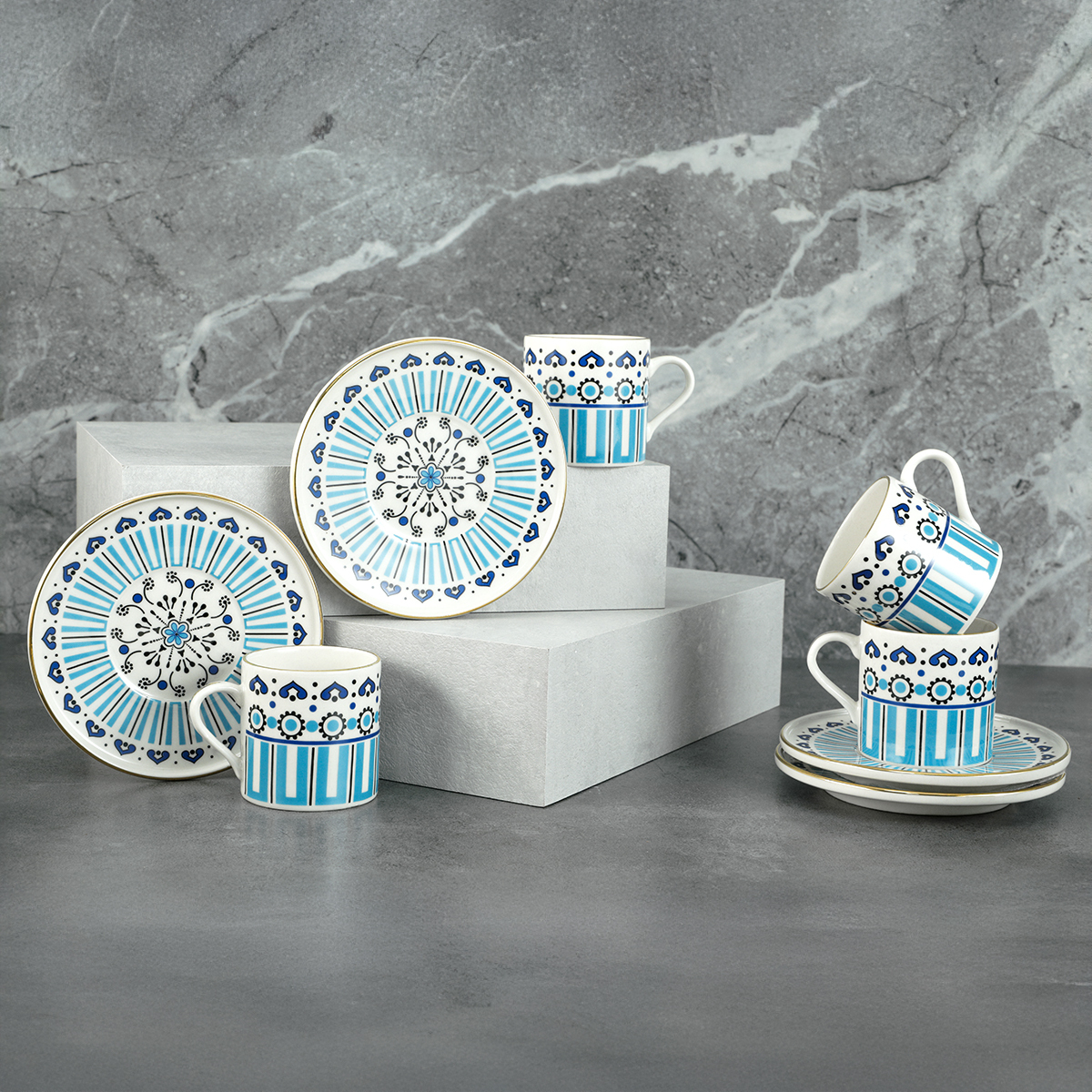 Birlikte mükemmel bir uyum yakalayan geometrik desenlerin hareketi ile kahve sunumlarınızda misafirlerinizin beğenisini kazanacak bu 6 kişilik takım, en sevdiğiniz fincanlarınız arasında yerini almaya aday!
