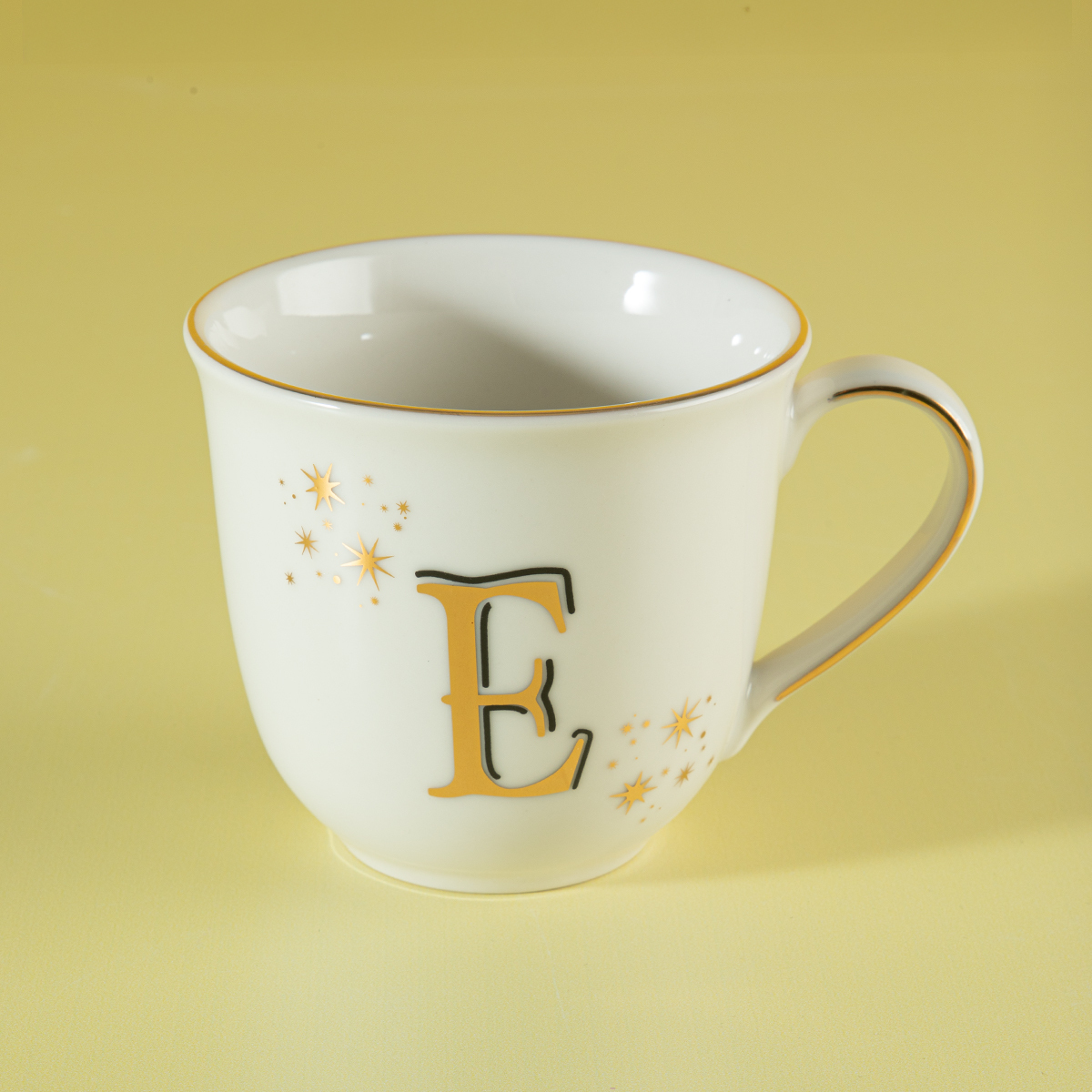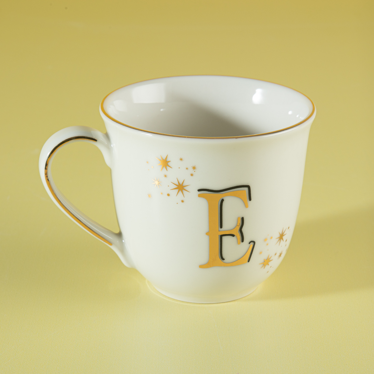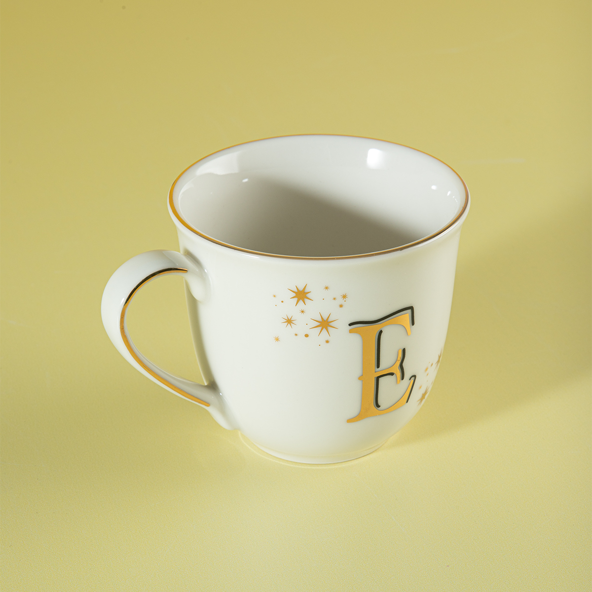 Aryıldız Chique serisinin zarif ve modern tasarımıyla öne çıkan Harfli Kupa E, 300 ml kapasitesiyle kahve, çay ve sıcak içeceklerinizi keyifle yudumlamanız için tasarlandı.