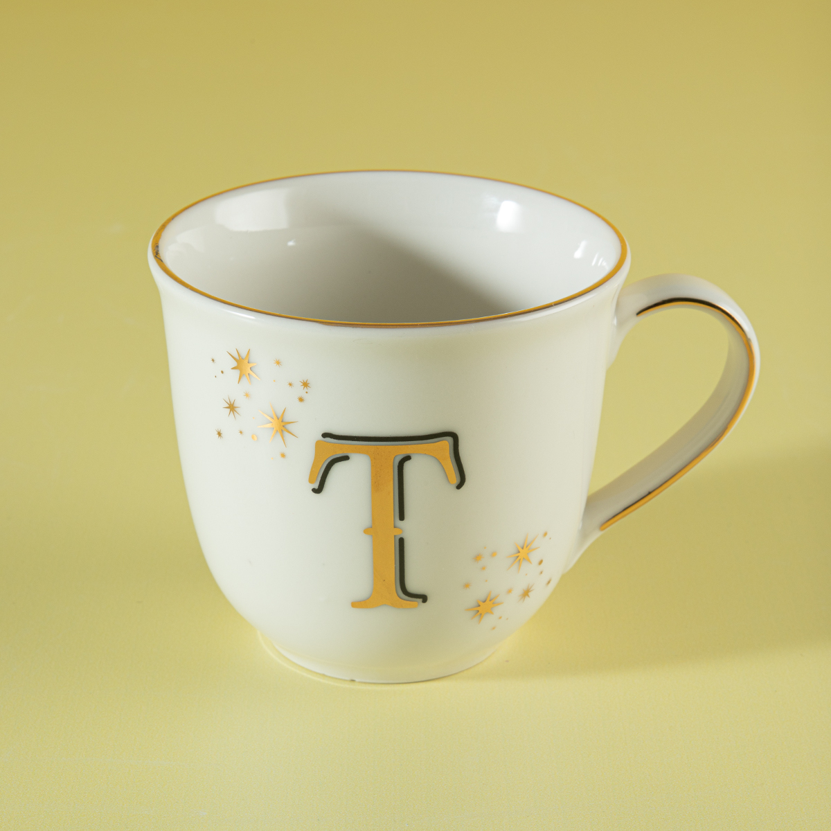 Aryıldız Chique serisinin zarif ve modern tasarımıyla öne çıkan Harfli Kupa T, 300 ml kapasitesiyle kahve, çay ve sıcak içeceklerinizi keyifle yudumlamanız için tasarlandı.