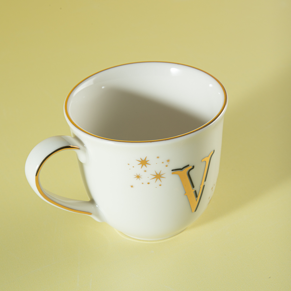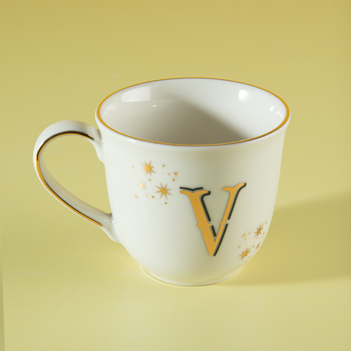 Aryıldız Chique serisinin zarif ve modern tasarımıyla öne çıkan Harfli Kupa V, 300 ml kapasitesiyle kahve, çay ve sıcak içeceklerinizi keyifle yudumlamanız için tasarlandı.