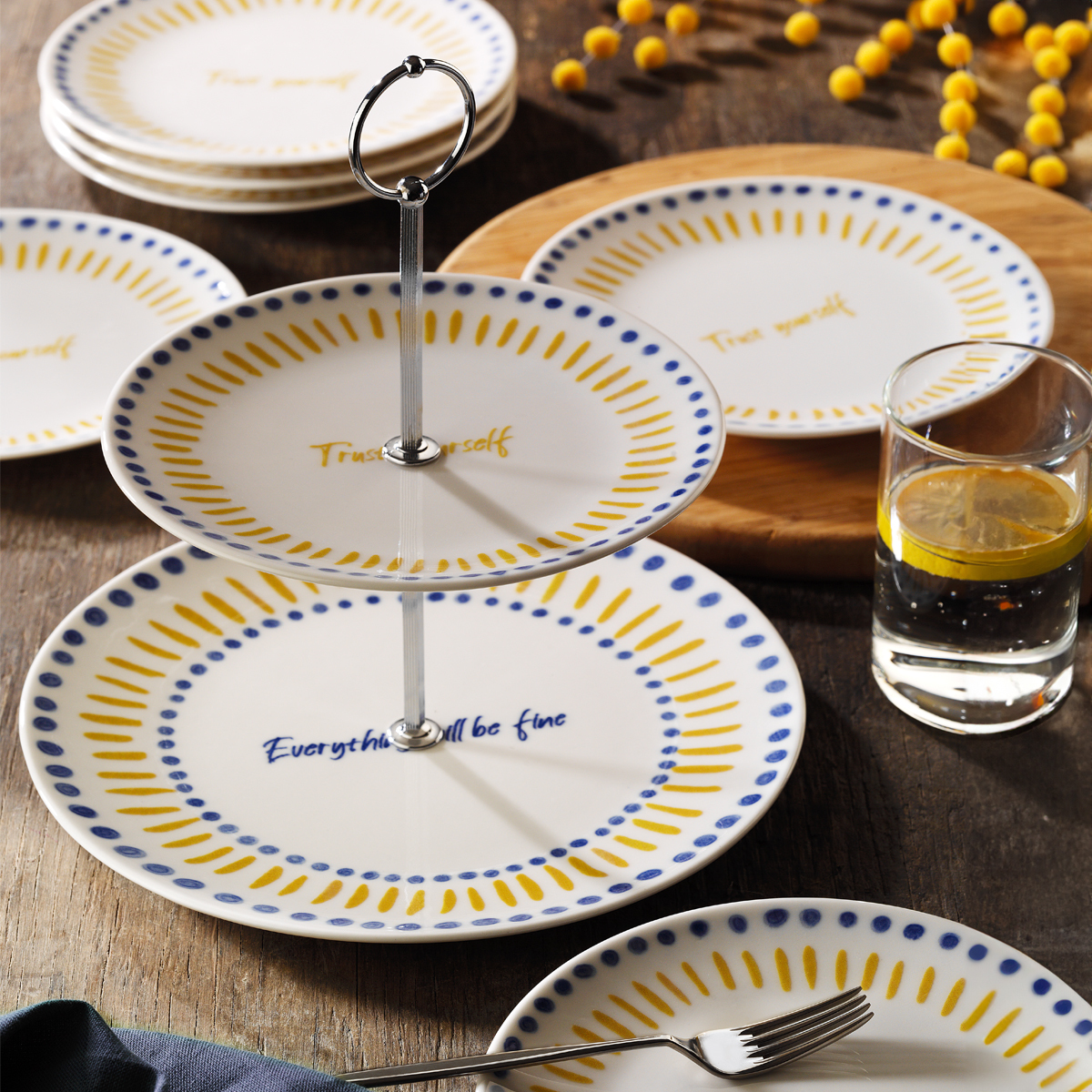 Set içeriğinde bulunan katlu kurabiyelik ile tatlılarınızı sergileyebilir, 6 adet pasta tabağı ile misafirlerinize benzersiz sunumlar hazırlayabilirsiniz.