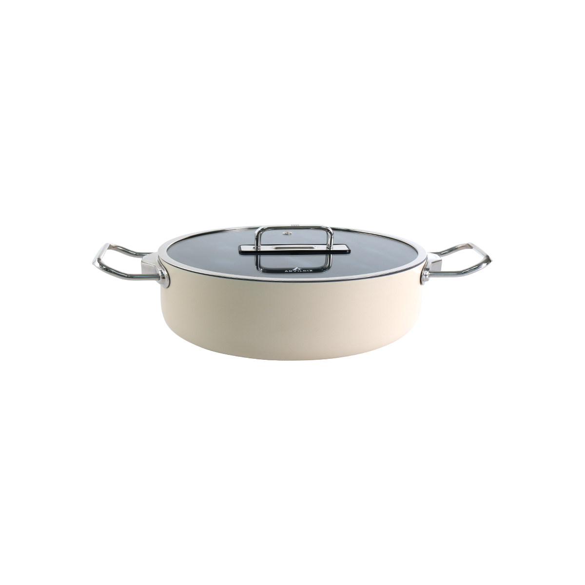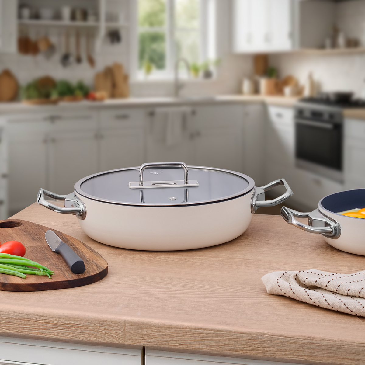 Bu koleksiyondaki her parçanın paslanmaz çelik tutacakları rahat bir tutuş sağlarken, fırında kullanılabilir özellikleriyle yemek pişirme deneyiminizi bir üst seviyeye taşıyor.