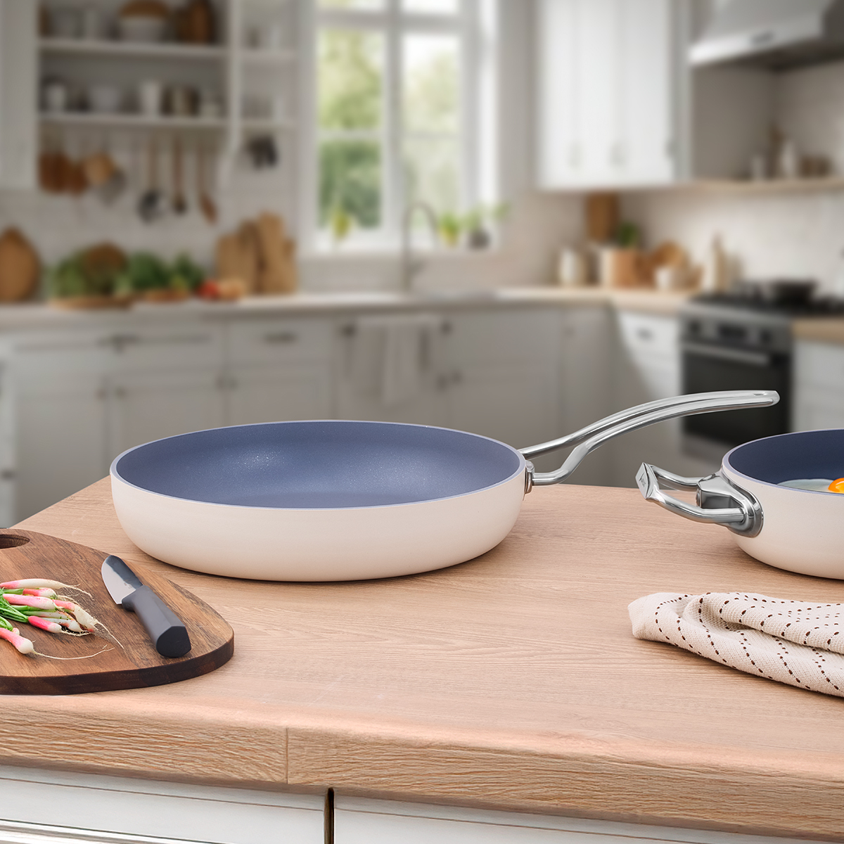Bu koleksiyondaki her parçanın paslanmaz çelik tutacakları rahat bir tutuş sağlarken, fırında kullanılabilir özellikleriyle yemek pişirme deneyiminizi bir üst seviyeye taşıyor.
