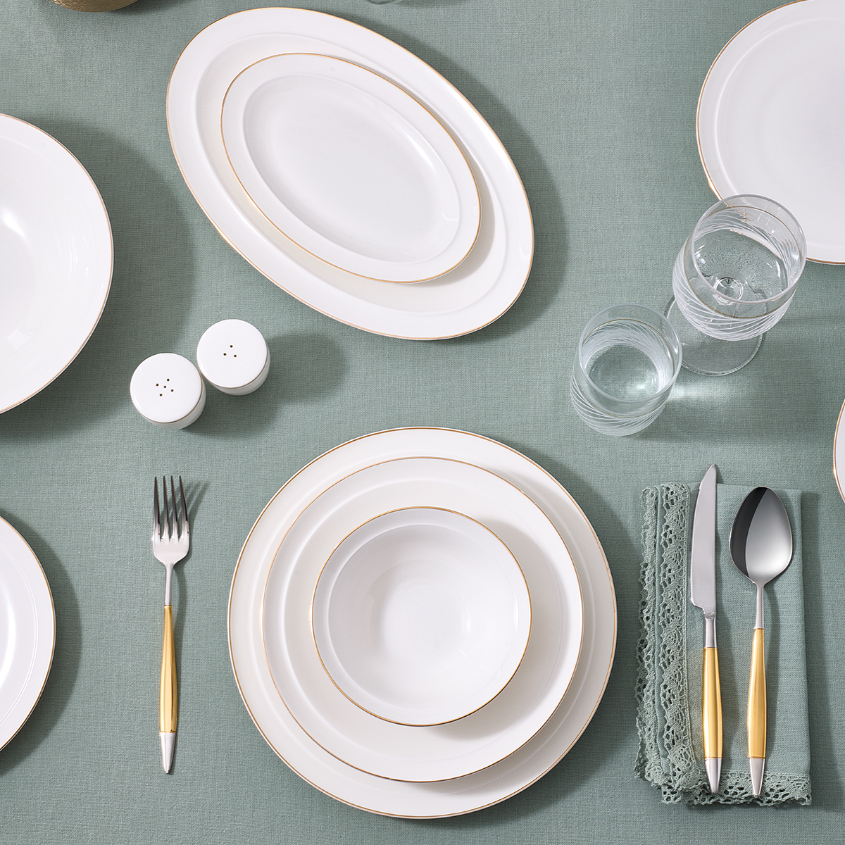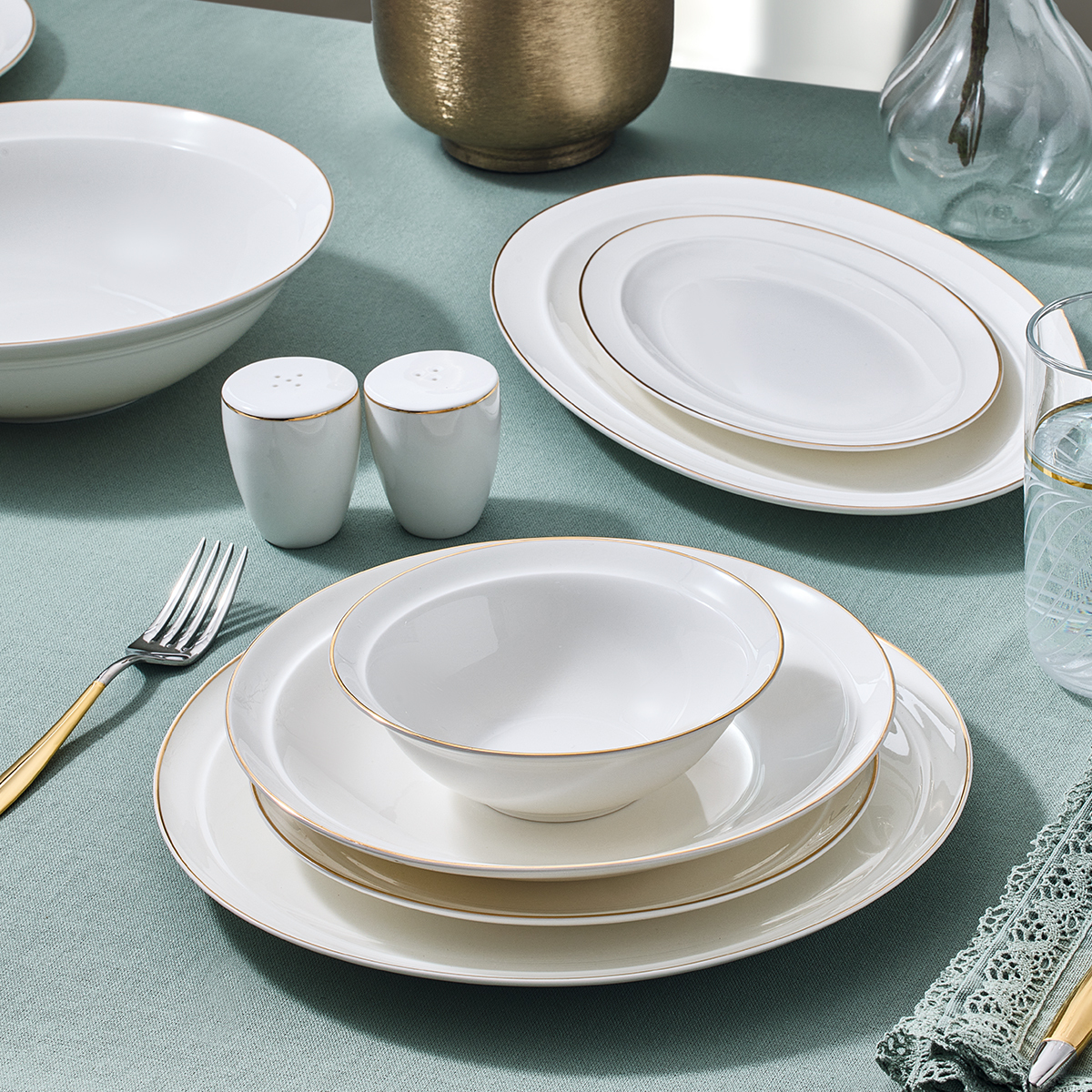 Provence etkisi taşıyan ince motifler ve altın şerit detayları, sofralarınıza hem modern hem de şık bir ambiyans kazandırır.