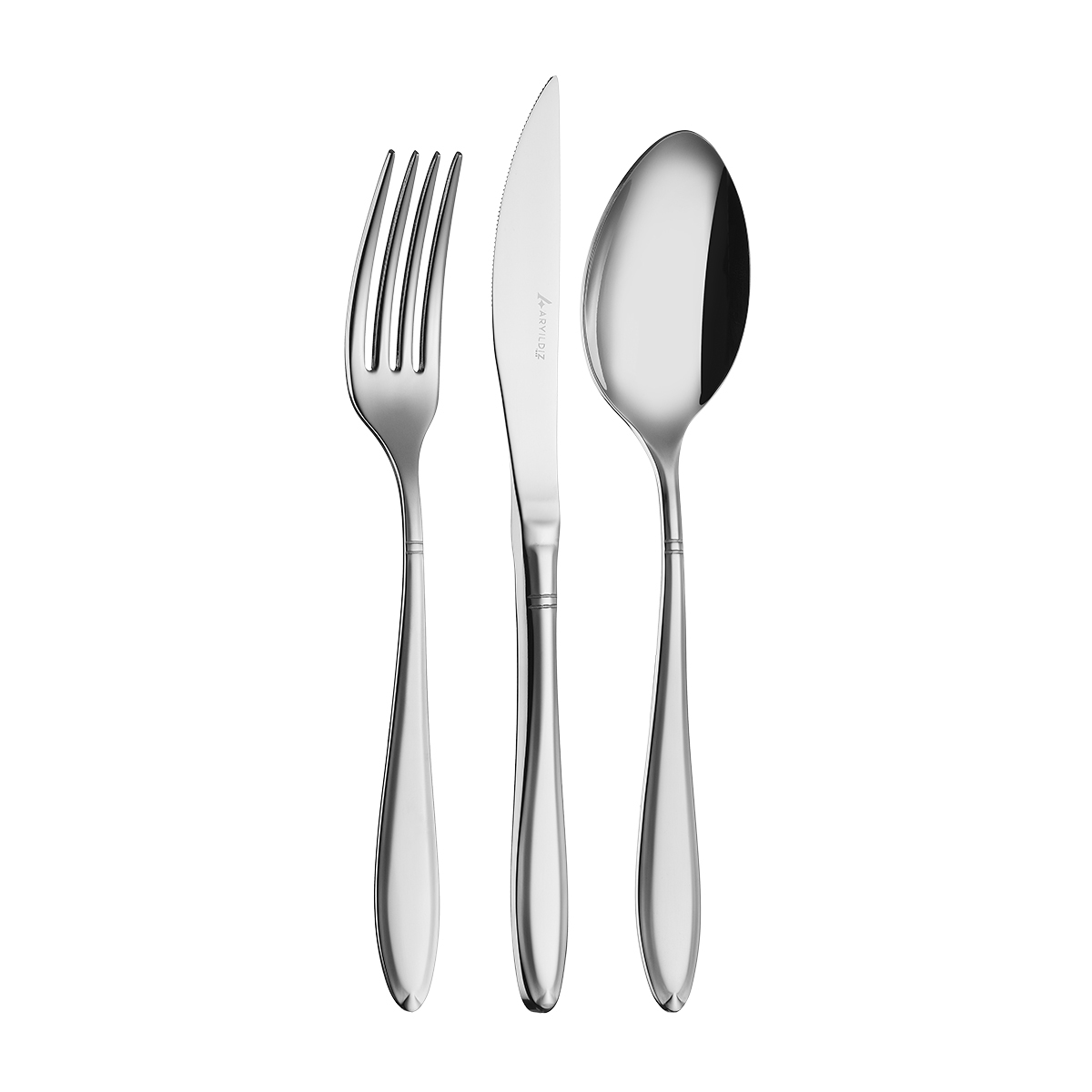 Aryıldız 12 Kişilik Çatal, Kaşık, Bıçak Takımı, modern tasarımı ve parlaklığı ile sofralara benzersiz bir şıklık getirir.