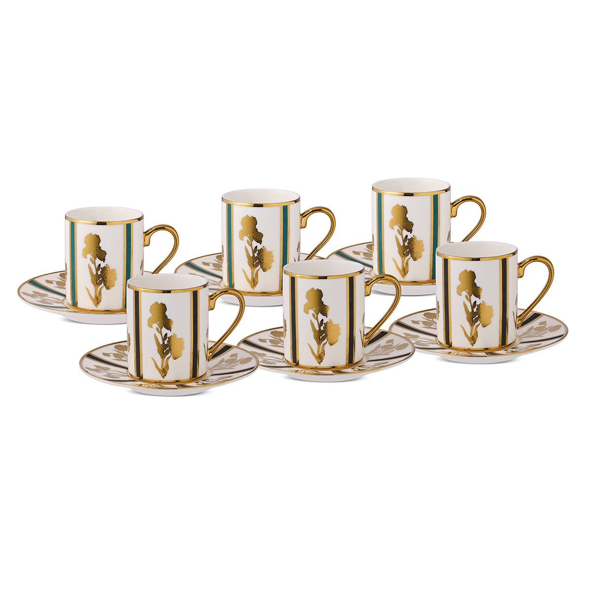 12 parçadan oluşan bu set, 6 adet kahve fincanı ve 6 adet fincan tabağından meydana gelir.
