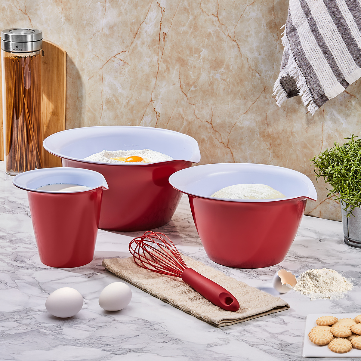 Mutfakta her işinizi kolaylaştıracak bu 3'lü karıştırma kabı setiyle tanışın! Farklı hacimleriyle çeşitli tarifler için ideal ölçüleri sunar.