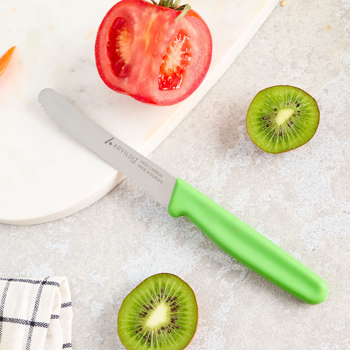 Bıçağın renkli ergonomik sapı, elde rahat bir tutuş sunarken mutfağınıza estetik bir görünüm kazandırır. Hafif yapısı sayesinde uzun süreli kullanımda bile konfor sağlar. Aryıldız’ın kalite anlayışıyla üretilen bu bıçak, keskinliğini uzun süre korur ve mutfakta profesyonel performans sunar.