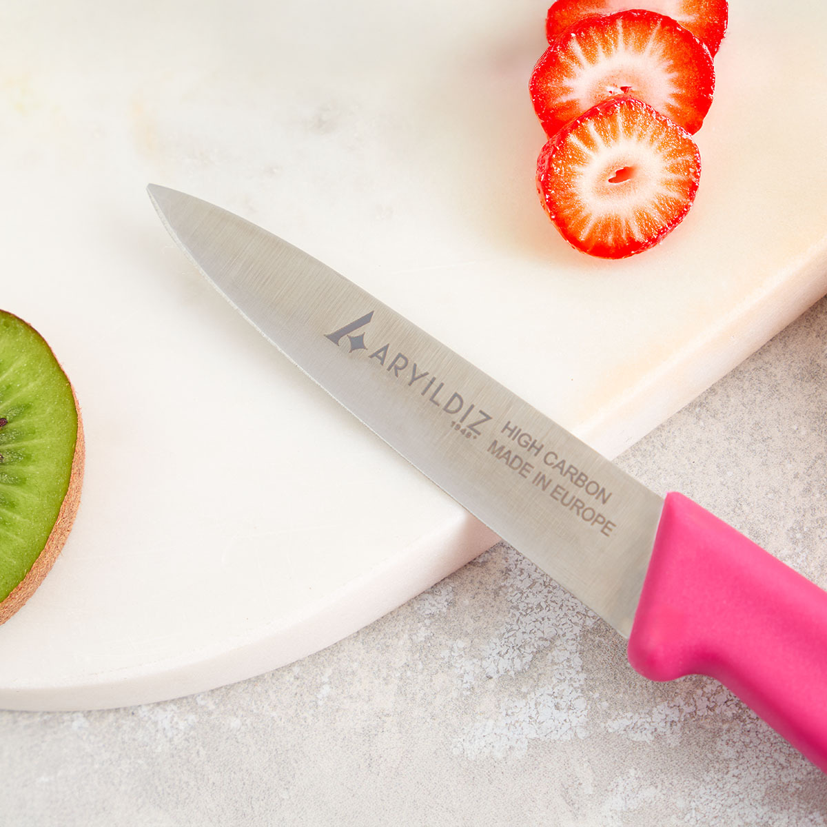 9 cm uzunluğundaki bıçaklar, meyve ve sebze doğrama işlemlerinde mükemmel kontrol ve keskinlik sağlar.