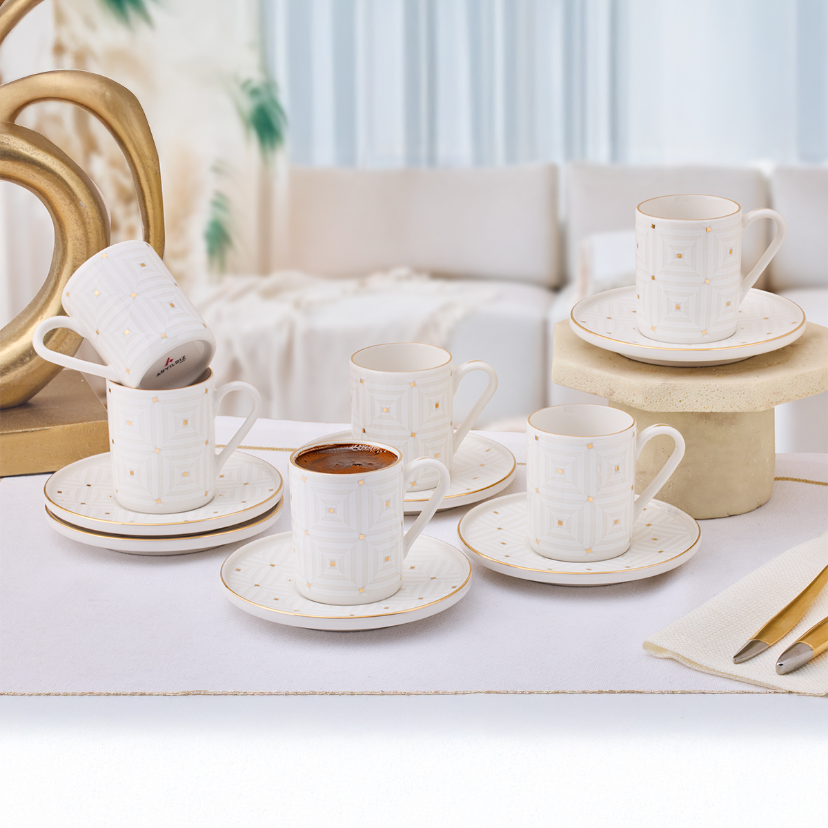 Aryıldız Dore 12 Parça 6 Kişilik Kahve Fincan Takımı 90 ml