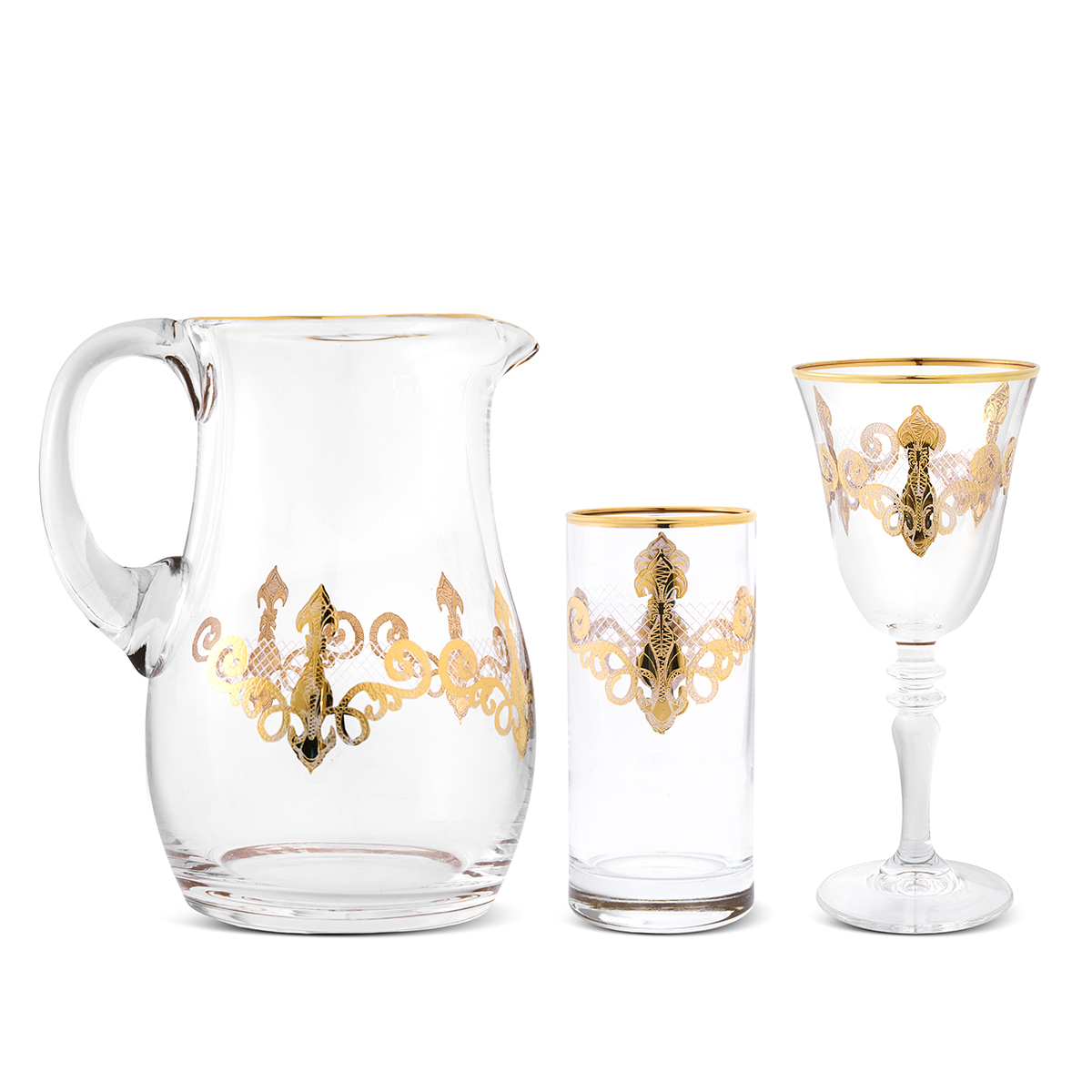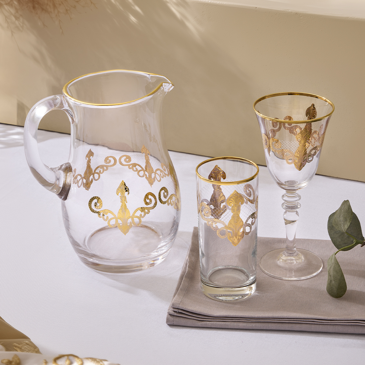 Gelince Haber VerZarif tasarımı ve şık 24 ayar Altın kaplama detaylarıyla sofralarınıza estetik bir dokunuş katacak olan 25 Parça Su Seti, hem günlük kullanım hem de özel davetler için ideal bir tercihtir.