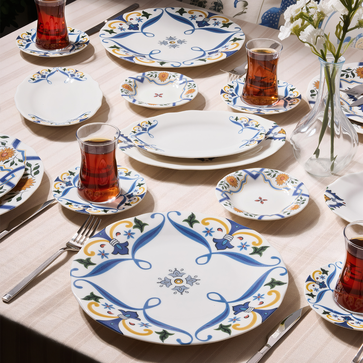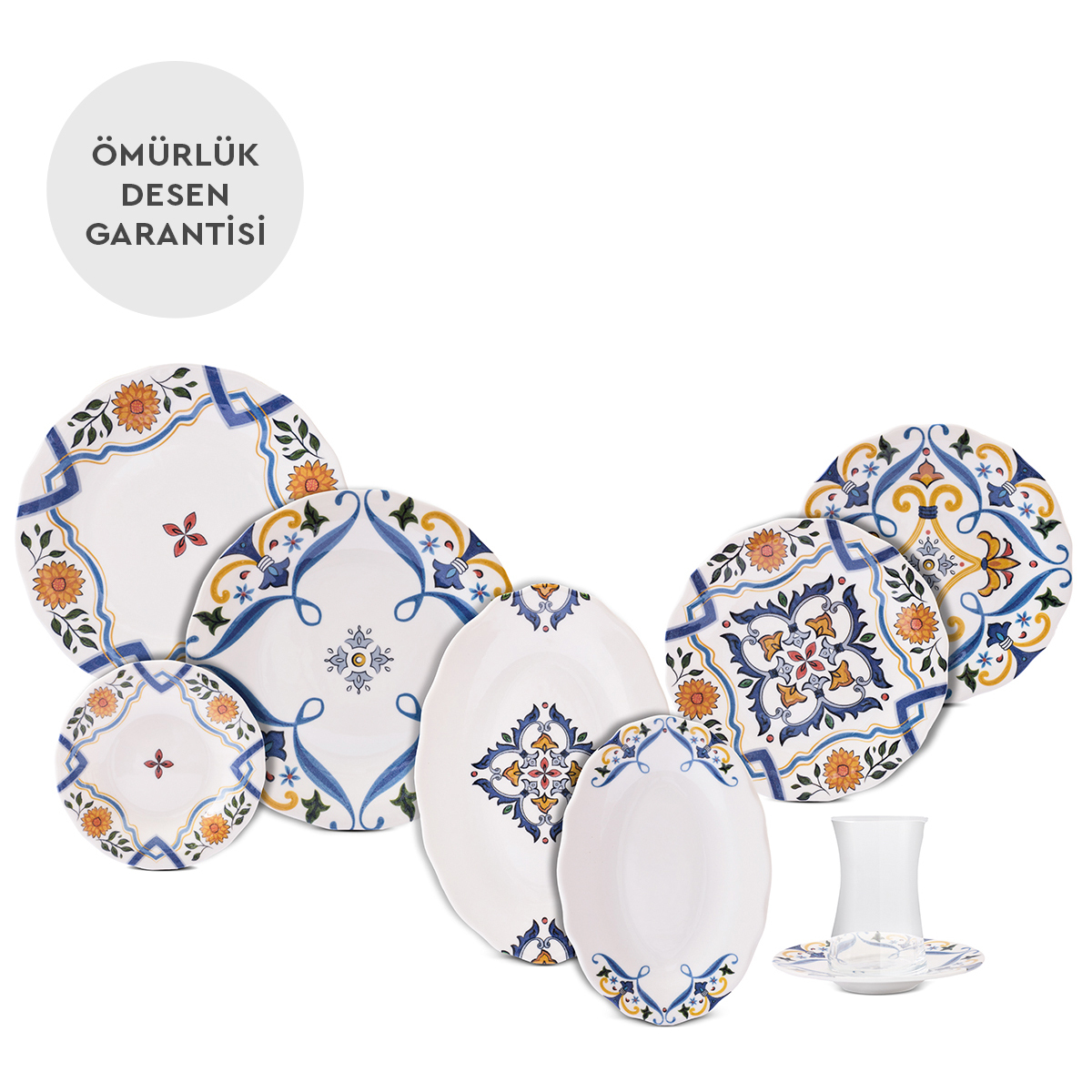 Renklerin, desenlerin ve işçiliğin uyumuyla tasarlanan bu özel seri, hem günlük kullanıma hem de misafir sofralarına şıklık katmak için ideal.