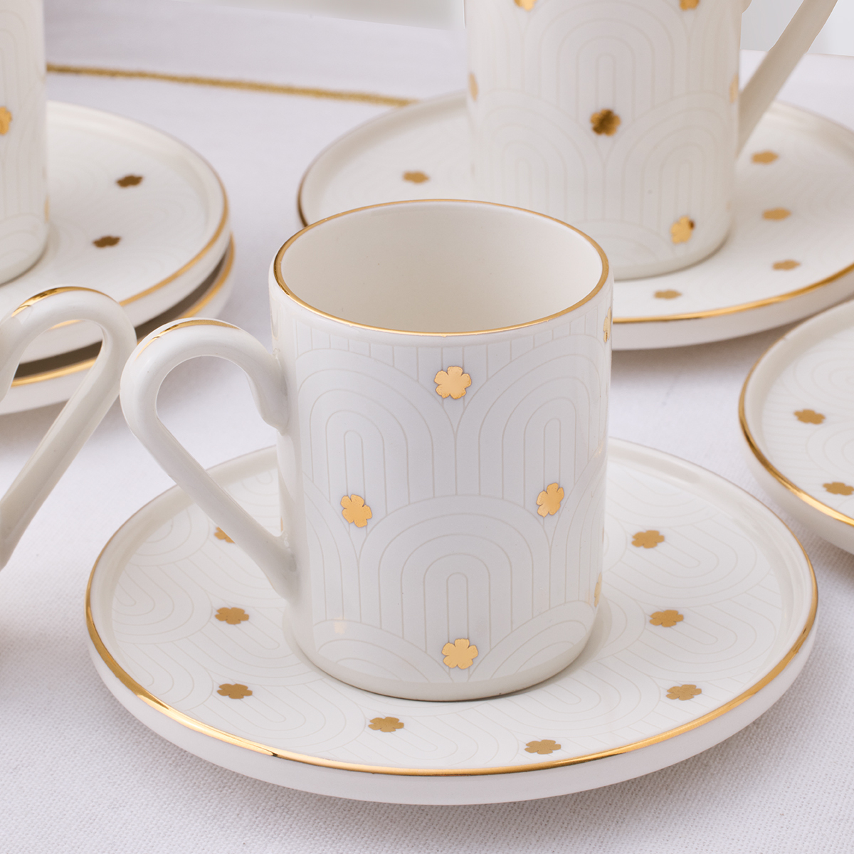 6 kişilik bu özel kahve fincan takımı, hem günlük kullanım hem de misafir ağırlamak için şıklığı ve kullanışlılığı bir araya getiriyor.