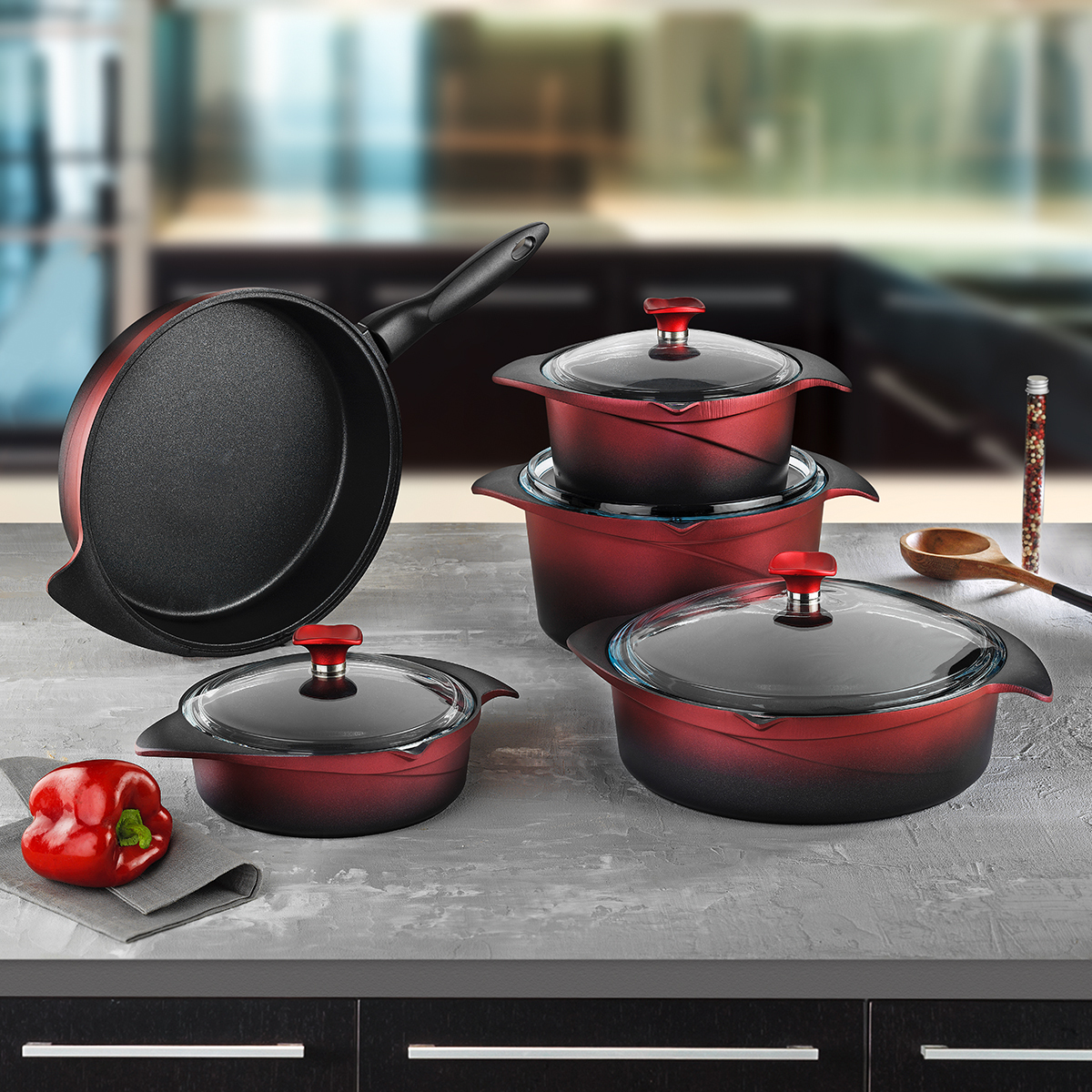 Aryıldız Flipper 9 Parça Tencere Seti Kırmızı