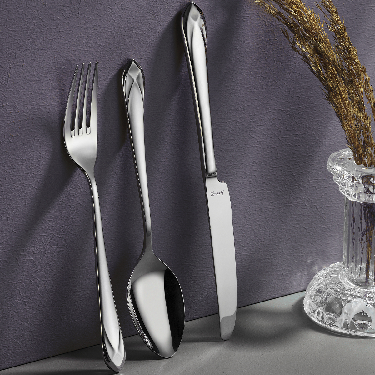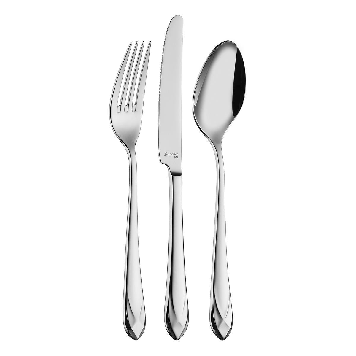 Aryıldız 12 Kişilik Çatal, Kaşık, Bıçak Takımı, modern tasarımı ve parlaklığı ile sofralara benzersiz bir şıklık getirir.