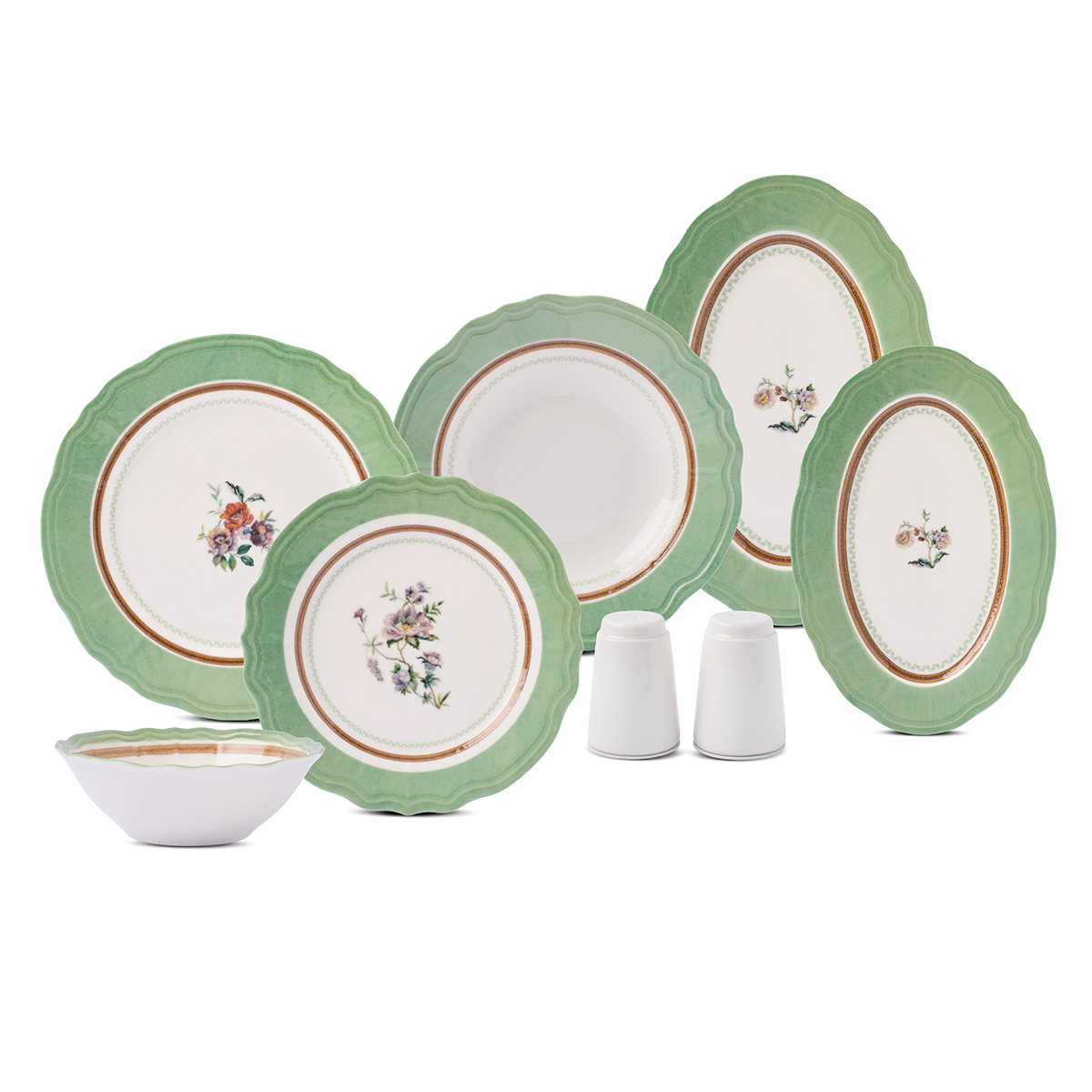 30 Parça Set İçeriği: Yemek tabakları, çorba tabakları, servis tabakları ve diğer tamamlayıcı parçalar ile eksiksiz bir set sunar.