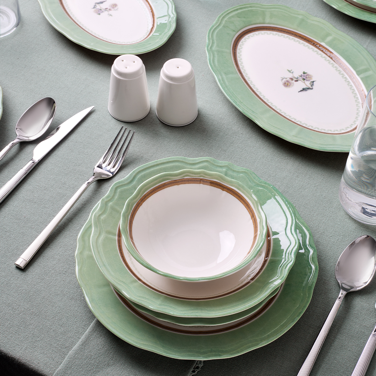 Estetik Mint Renk ve Zarif Desenler: Sofralarınıza ferah ve samimi bir hava katar.
