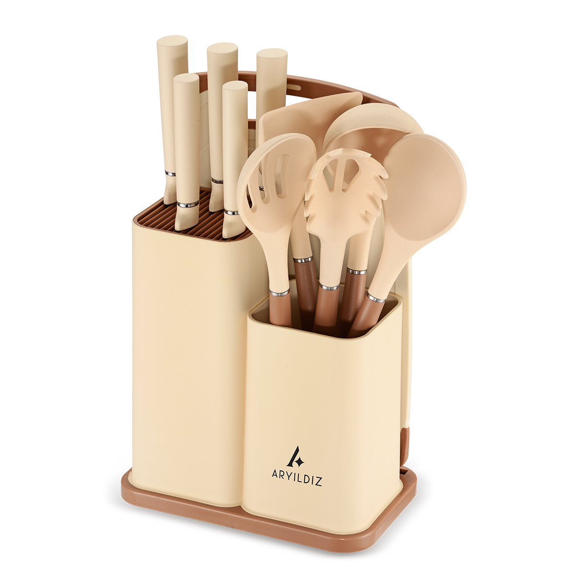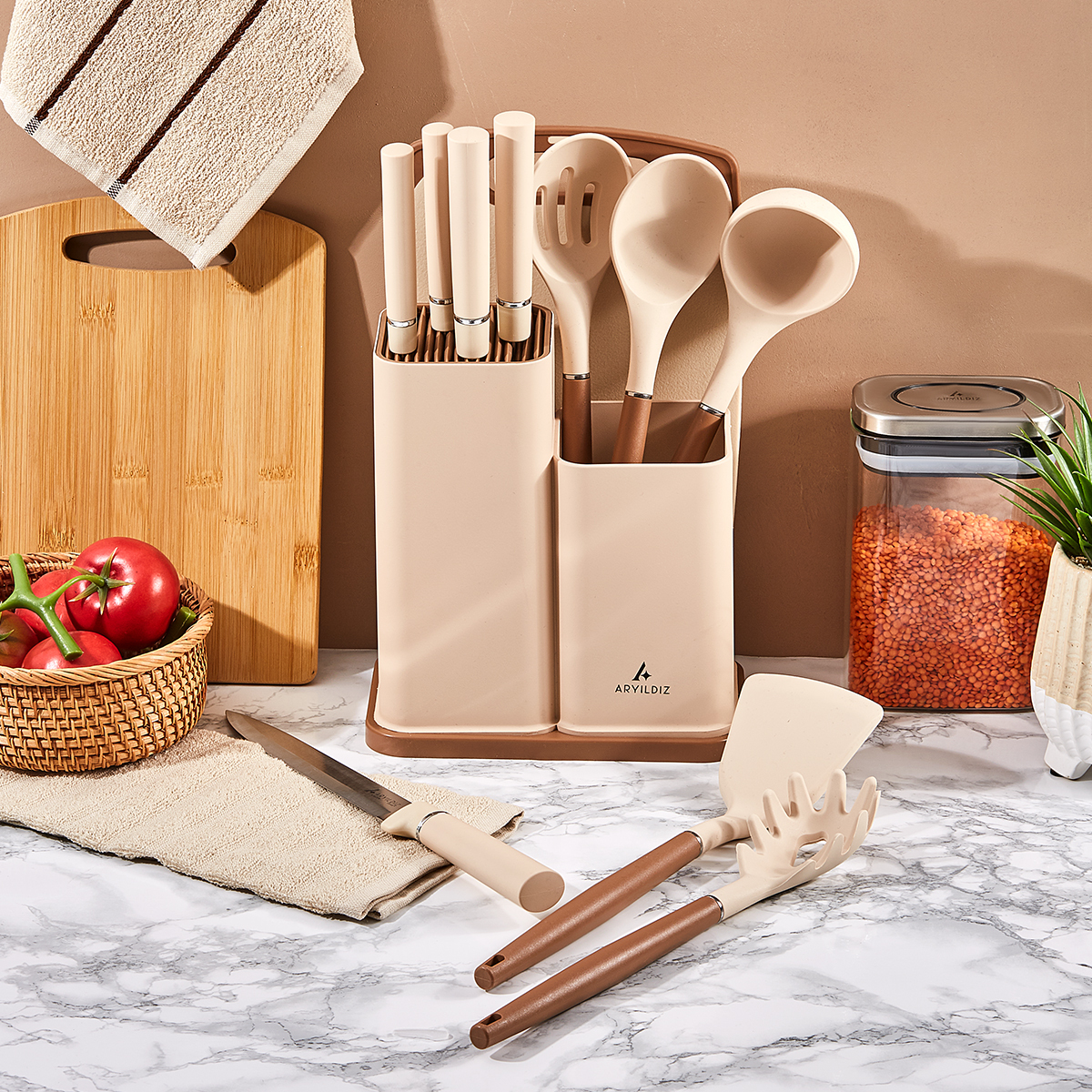 Gelince Haber VerMutfakta işlevsellik, kalite ve şıklığı bir araya getiren Aryıldız Kaizu 12 Parça Blok Bıçak ve Kesme tahtası Seti yemek hazırlık sürecinizi hem kolaylaştırır hem de estetik bir deneyim sunar.
