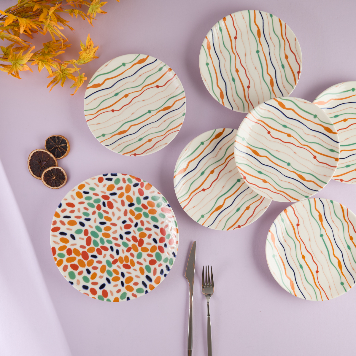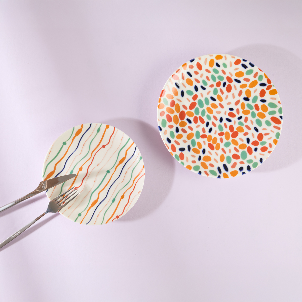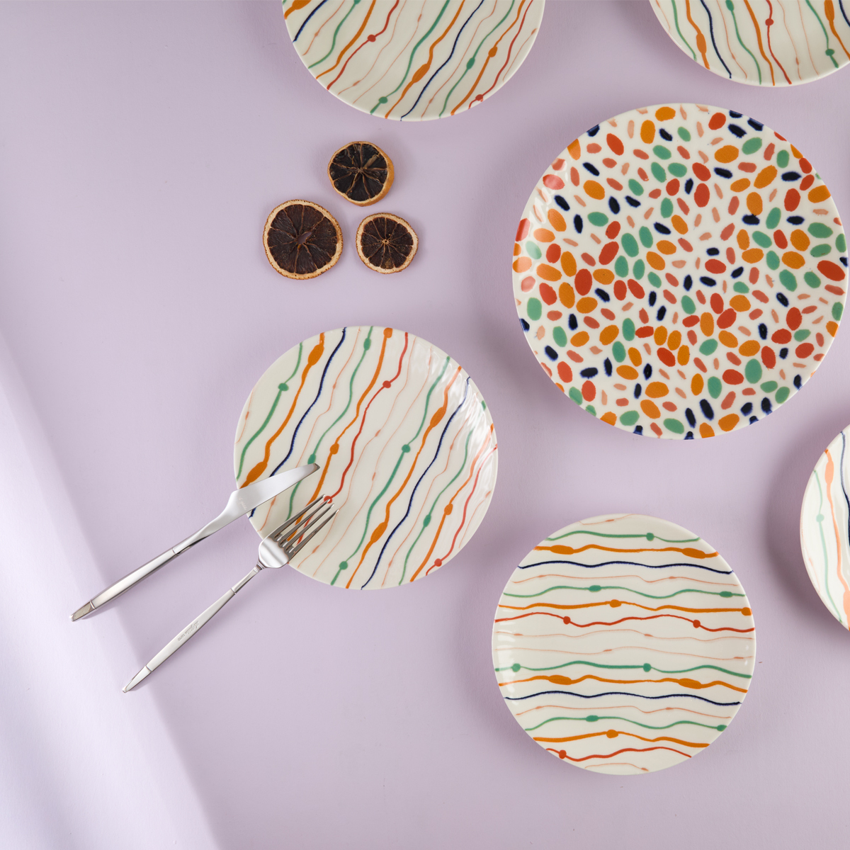 Misafirlerinize uyumlu ve renkli sunumlar yapmanız için özenle tasarlanmış porselen tabaklar.