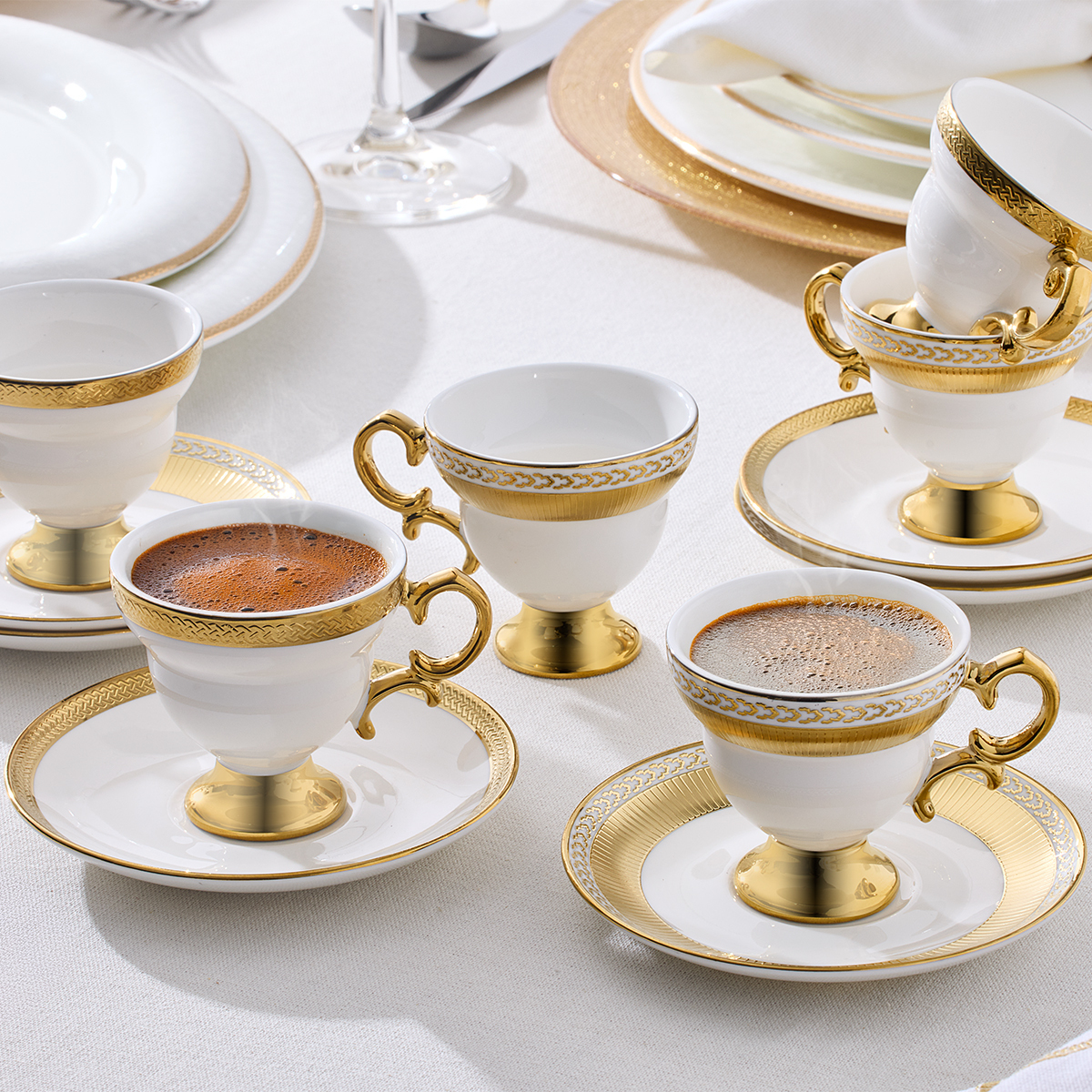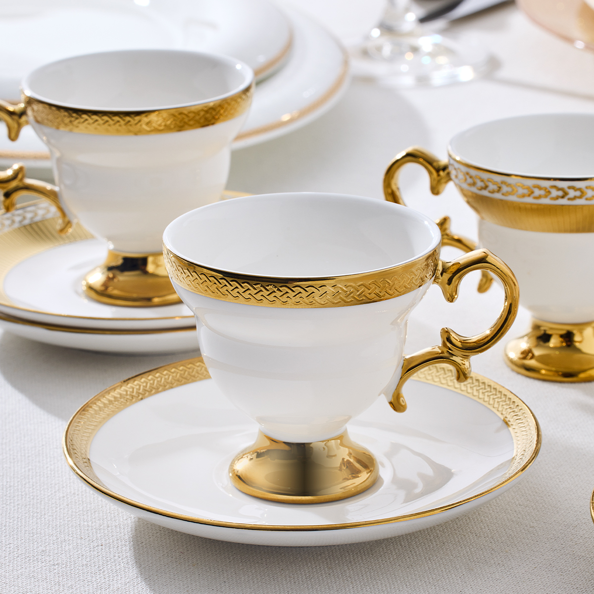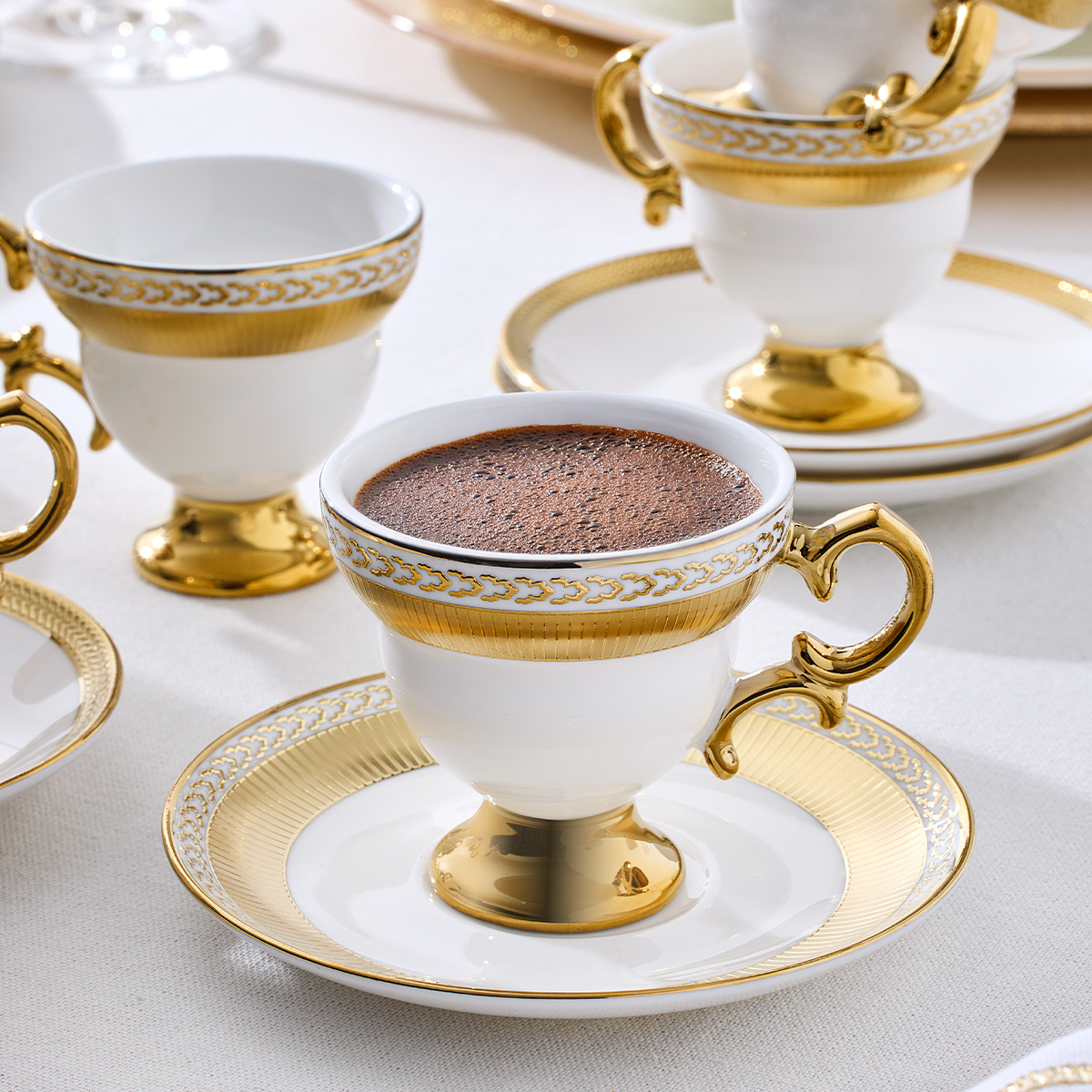 Aryıldız Majesty serisi, kahve tutkunları için estetikle işlevselliği bir araya getiriyor. Göz alıcı tasarımıyla evinizin dekoruna uyum sağlar, misafirlerinizi büyüleyen şık sunumlar oluşturur. Her fincan, zarafet ve konforu aynı anda sunar.