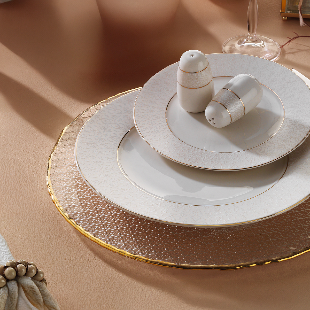 Minimalist gold dokunuşlar, tabaklara sofistike bir görünüm kazandırırken; sağlam ve dayanıklı yapısıyla uzun ömürlü kullanım sağlar.