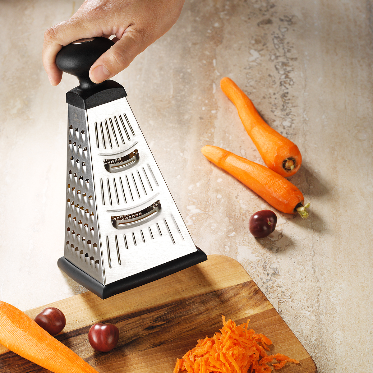 Farklı yüzeyler sayesinde meyve, sebze, peynir, çikolata ve daha birçok malzemeyi istediğiniz formda hazırlayabilirsiniz. Hem günlük yemeklerde hem de özel sunumlarda profesyonel sonuçlar elde edersiniz.