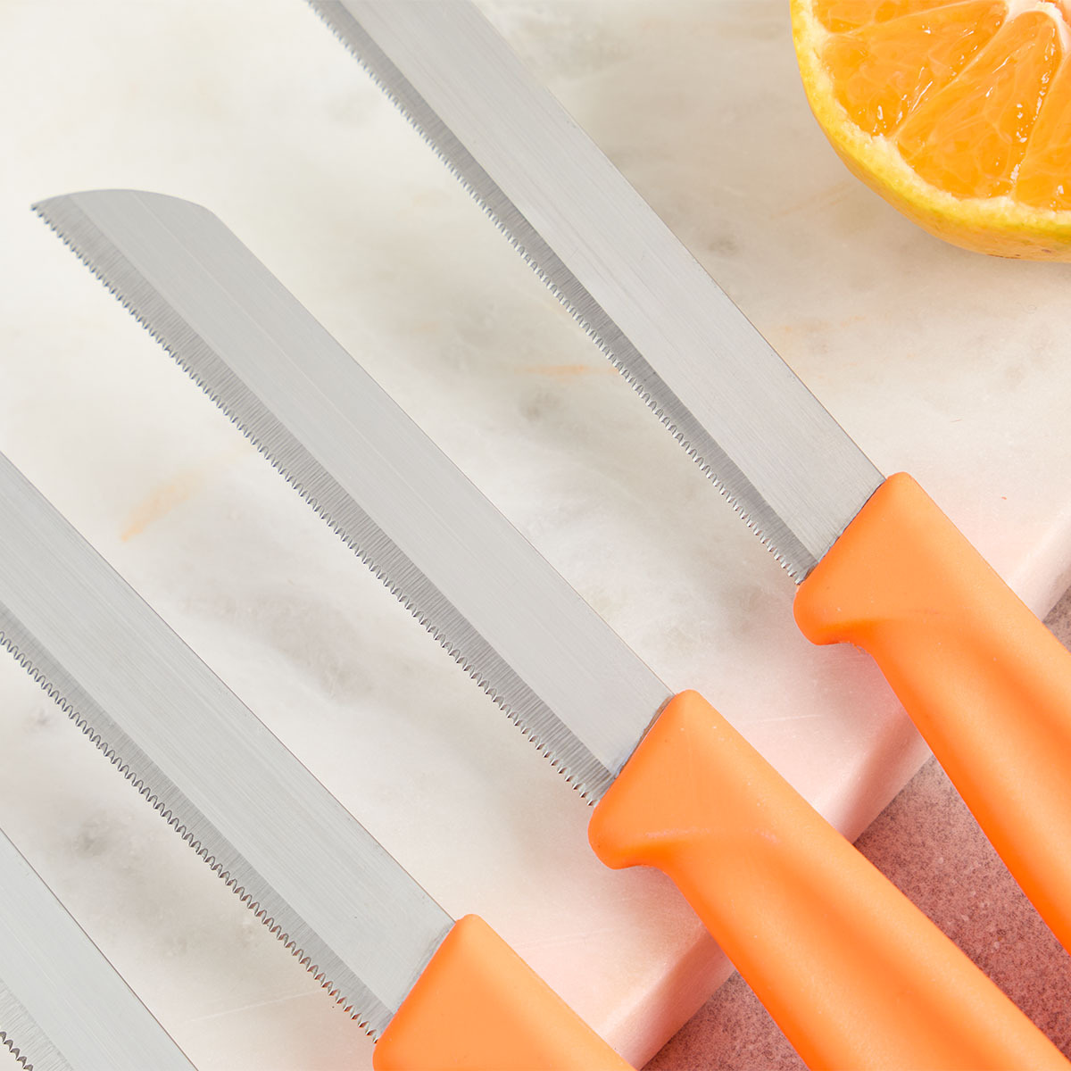 9 cm uzunluğundaki bıçaklar, meyve ve sebze doğrama işlemlerinde mükemmel kontrol ve keskinlik sağlar.