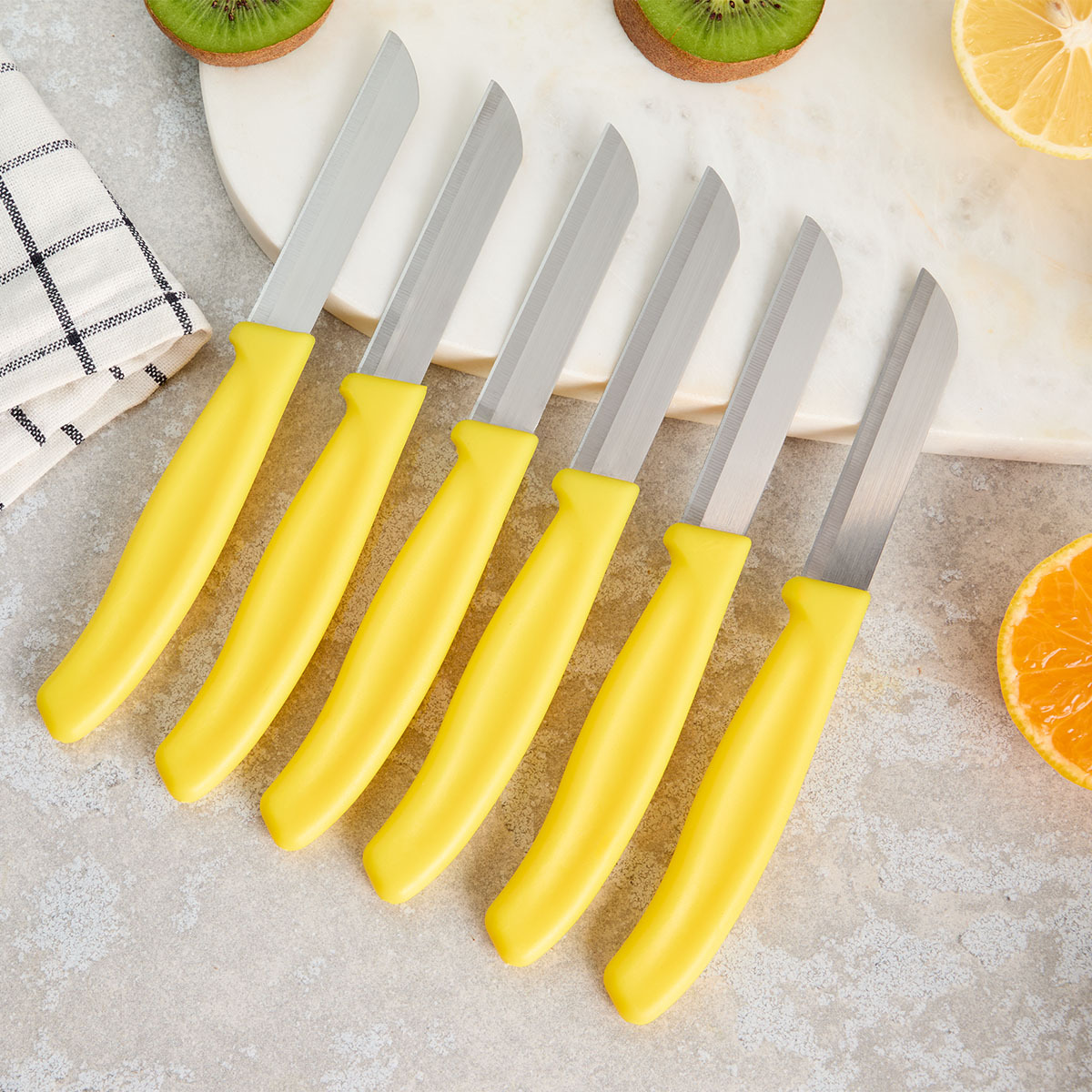 9 cm uzunluğundaki bıçaklar, meyve ve sebze doğrama işlemlerinde mükemmel kontrol ve keskinlik sağlar.