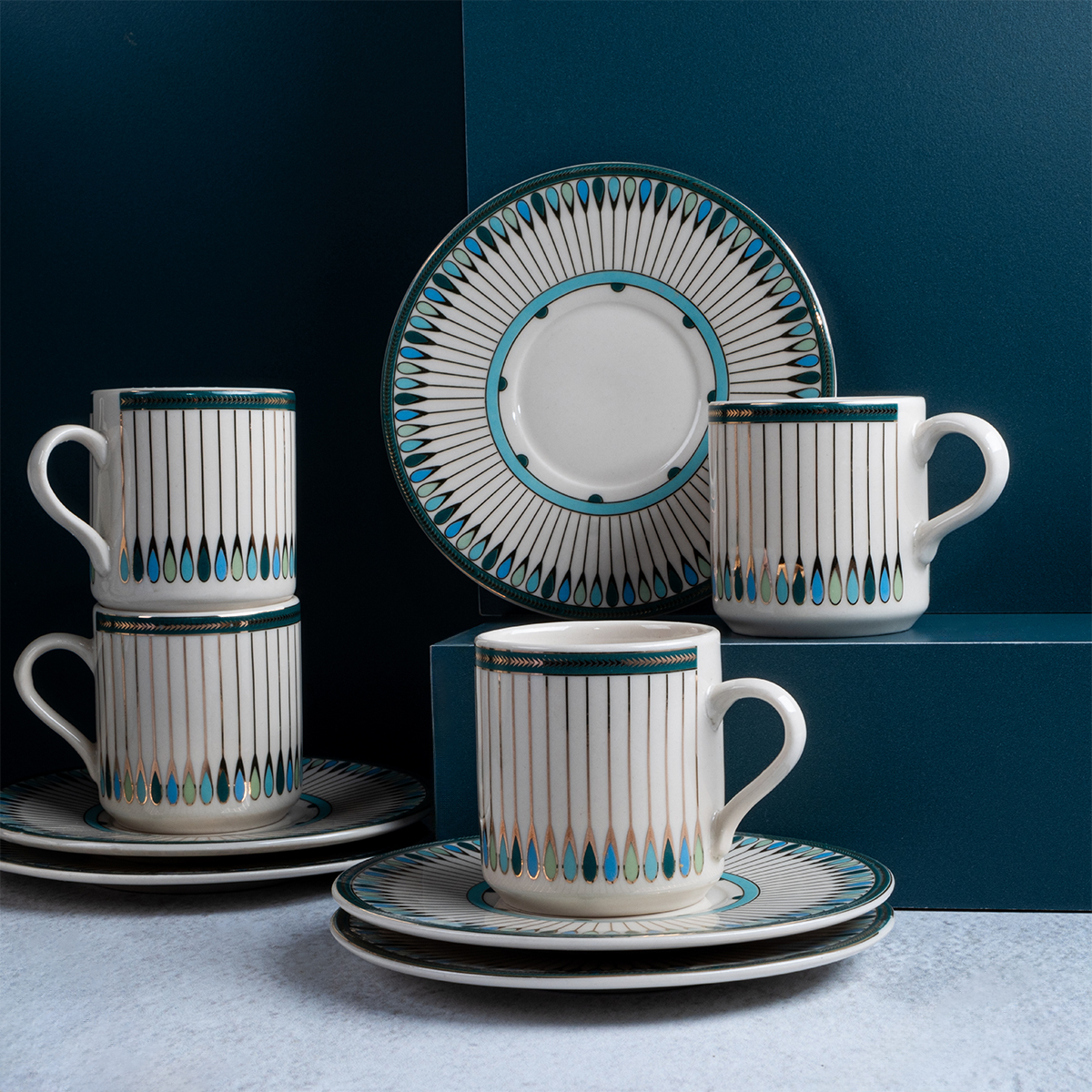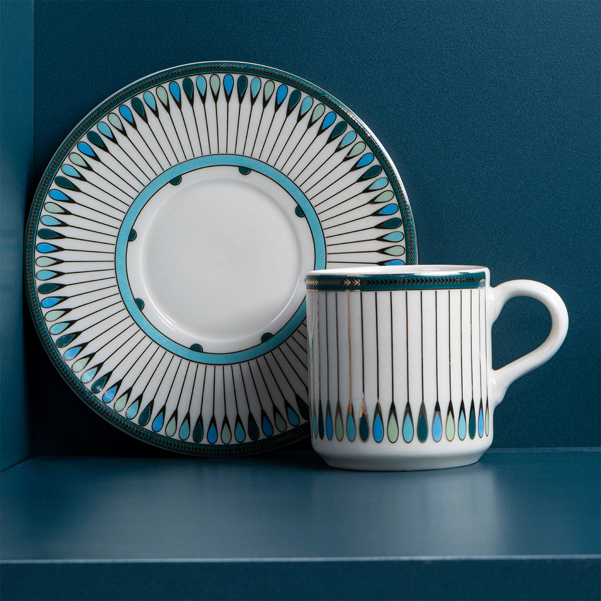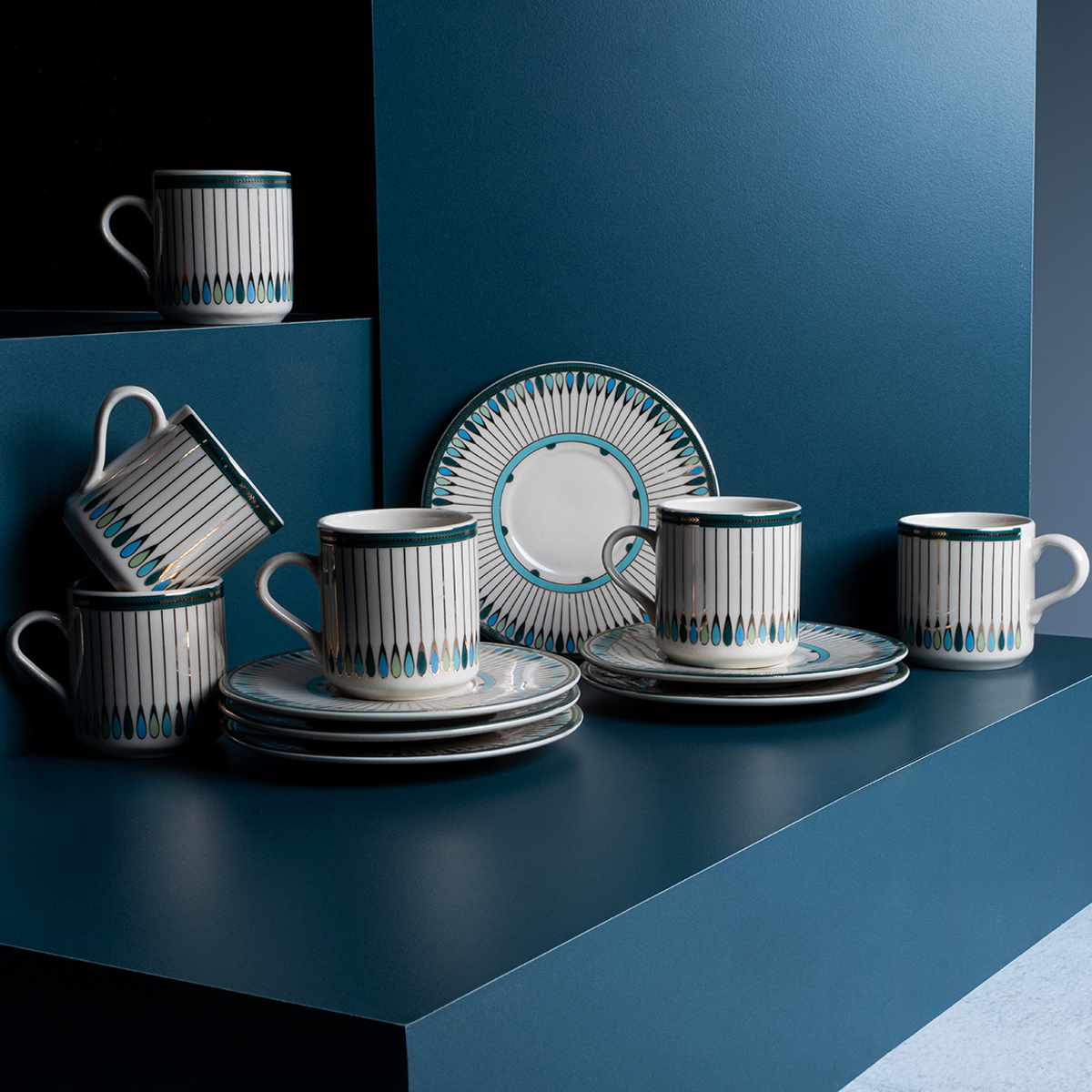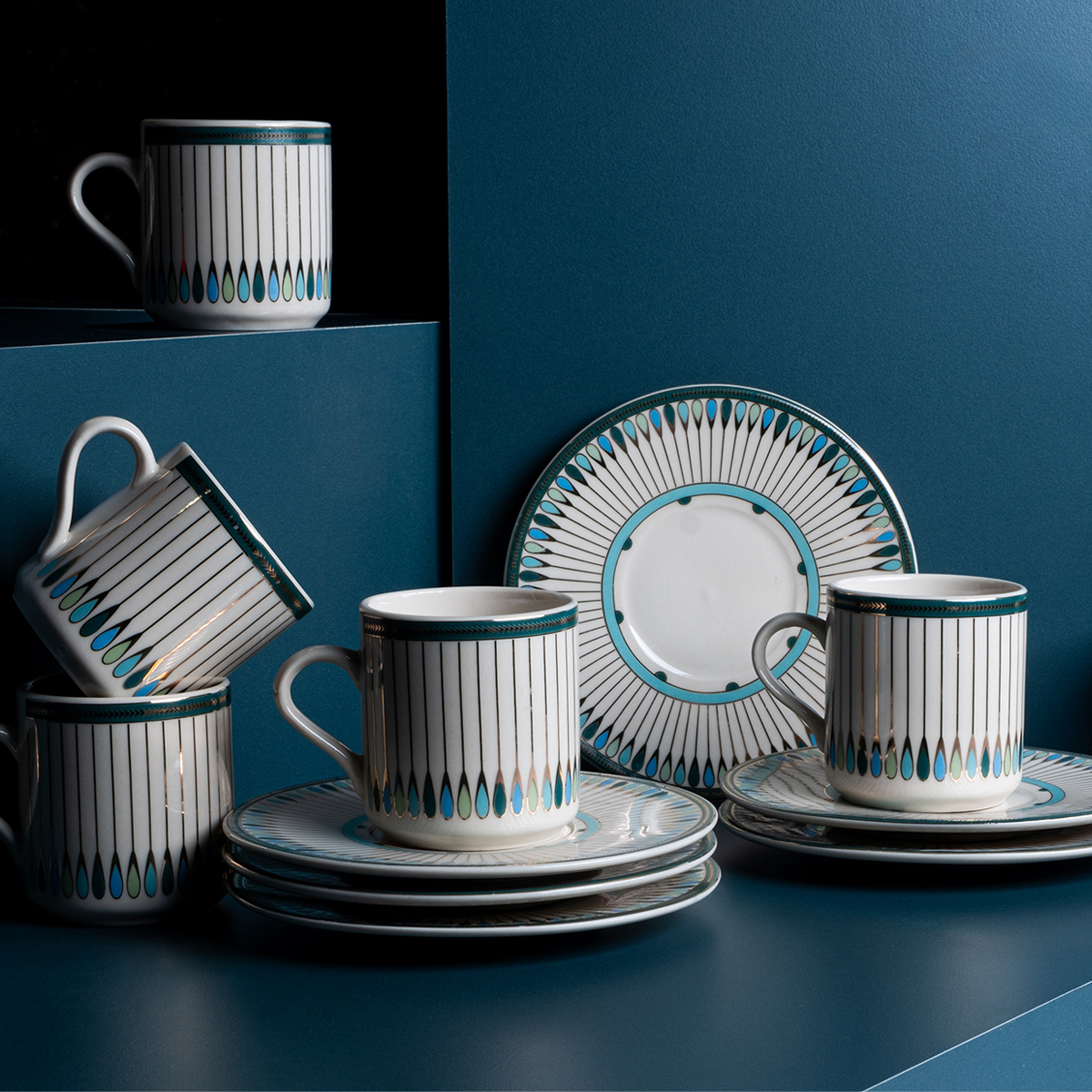 Birlikte mükemmel bir uyum yakalayan geometrik desenlerin hareketi ile kahve sunumlarınızda misafirlerinizin beğenisini kazanacak bu 6 kişilik takım, en sevdiğiniz fincanlarınız arasında yerini almaya aday!