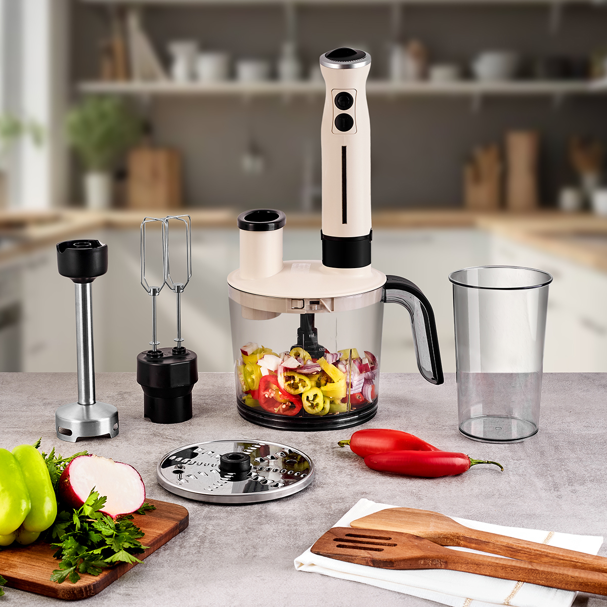 800 ml kapasiteli karıştırma kabı ile sebze ve meyveleri kolayca ezerek, püre, ayran vb. karışımları kolaylıkla hazırlayabilirsiniz.