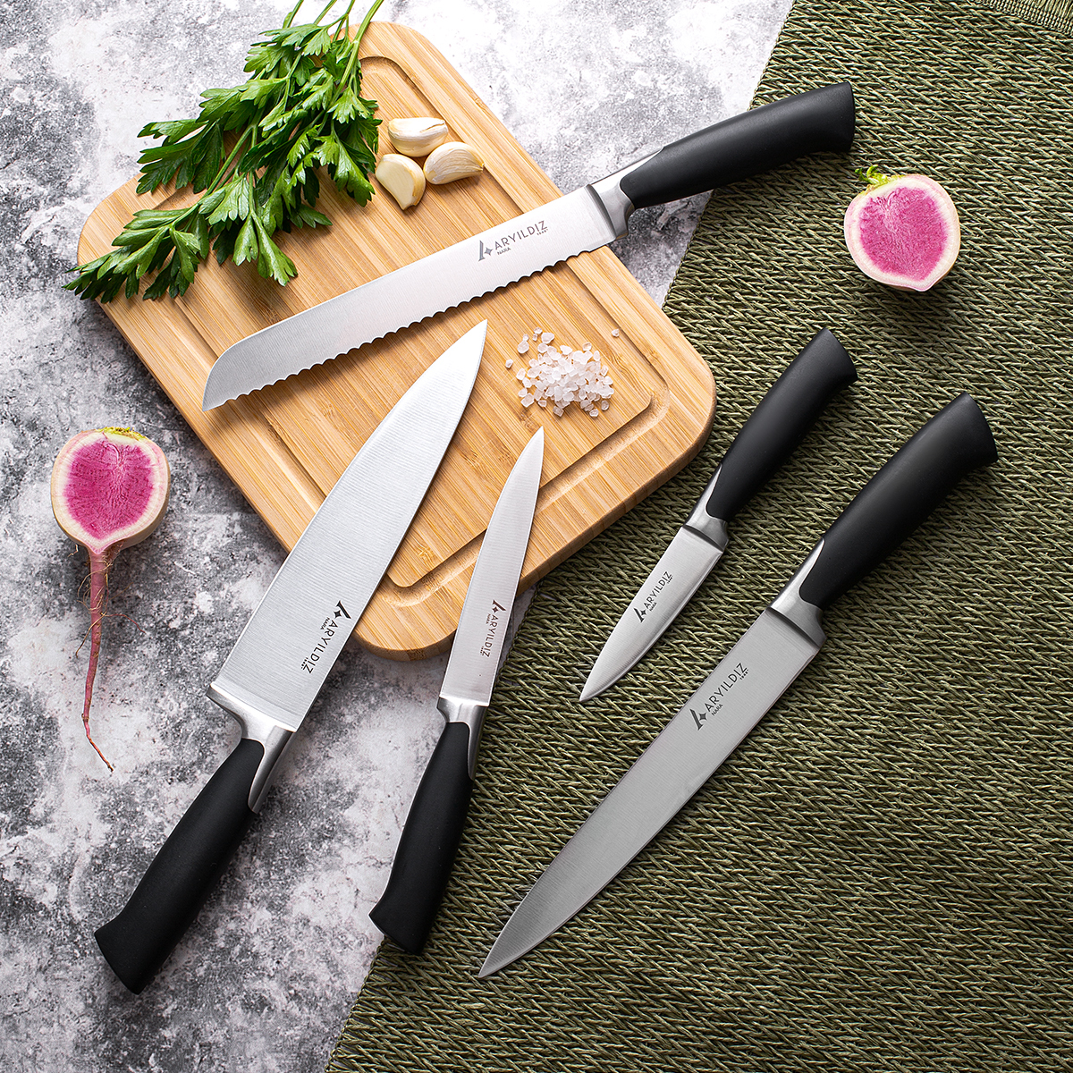 Hassas kesimler için tasarlanan bu set, mutfağınızda estetik ve performansı buluşturur.