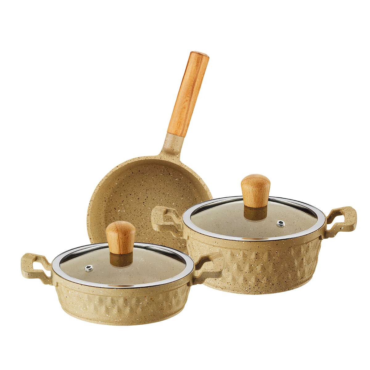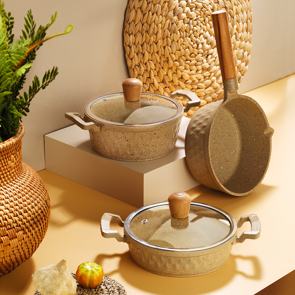 Granit malzeme, hem dayanıklılığı hem de uzun ömürlü kullanım sağlamasıyla öne çıkar. Isıyı dengeli dağıtma özelliği ile yemekler eşit şekilde pişer.