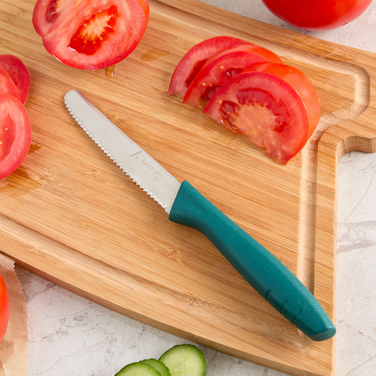 Bıçağın renkli ergonomik sapı, elde rahat bir tutuş sunarken mutfağınıza estetik bir görünüm kazandırır. Hafif yapısı sayesinde uzun süreli kullanımda bile konfor sağlar. Aryıldız’ın kalite anlayışıyla üretilen bu bıçak, keskinliğini uzun süre korur ve mutfakta profesyonel performans sunar.