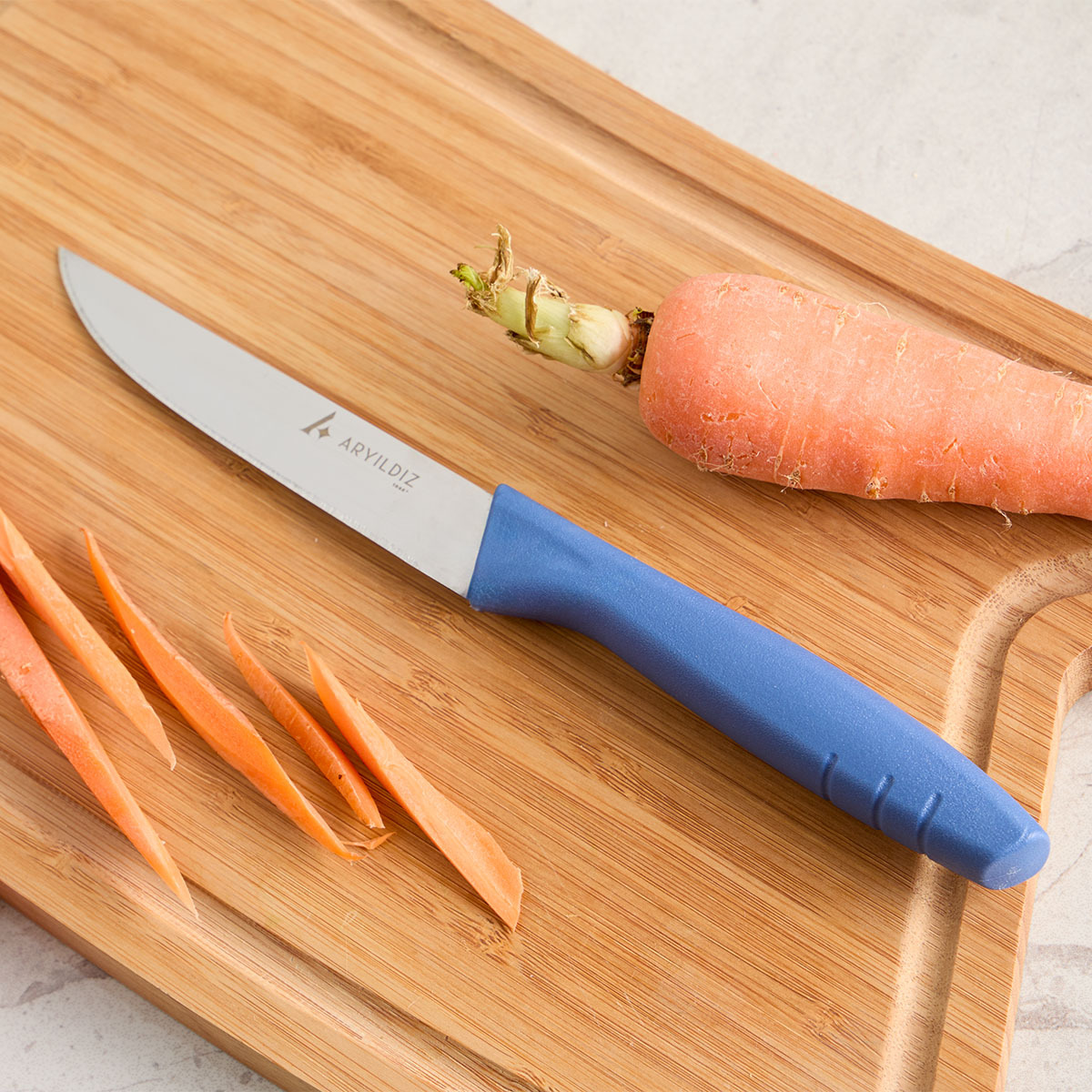 Yüksek kalite paslanmaz çelikten üretilen keskin bıçak ağzı, uzun süreli kullanımda bile ilk günkü performansını korur. İnce doğrama, dilimleme ve soyma işlemlerinde maksimum hassasiyet sağlar.